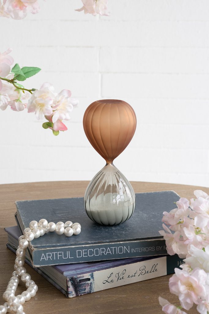 Blending classic elegance with modern design, this 30-minute hourglass features two vertically ribbed bulbs, a muted gray top, and a warm copper base. Filled with white sand, it brings timeless charm to any space while helping you stay on track with daily tasks.
