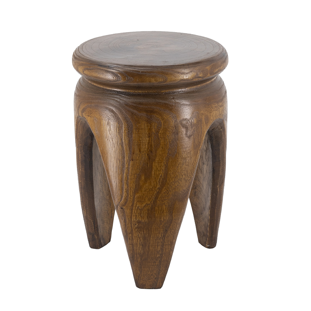 Blending classic Asian design with a touch of tribal charm, this side table features a thick, round top, three sturdy legs, and a deep, textured brown finish. Perfectly sized to serve as an end table, nightstand, or display pedestal, the 100% paulownia wood construction ensures lasting durability and easy maintenance.
