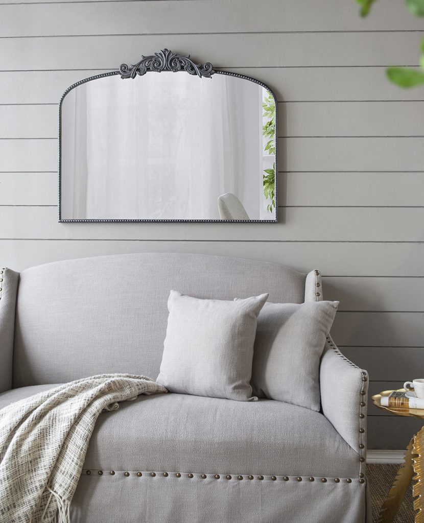 This stunning mirror is reminiscent of the baroque era with its detailing and features a black finish for a modern look.