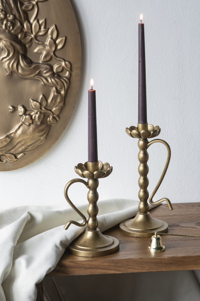 The unique, old-world form and intricate detailing allow this candlestick to complement traditional, modern, eclectic, and transitional themes, ensuring it can slot into any setting seamlessly