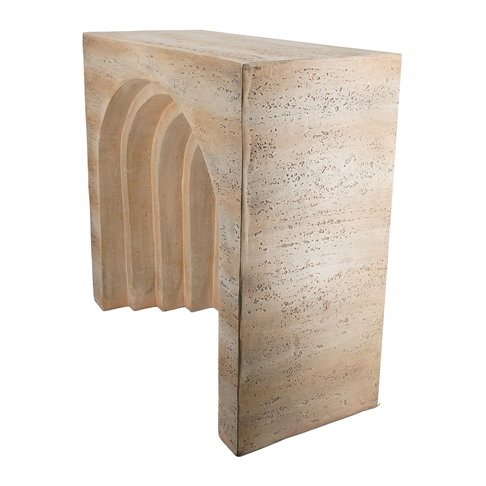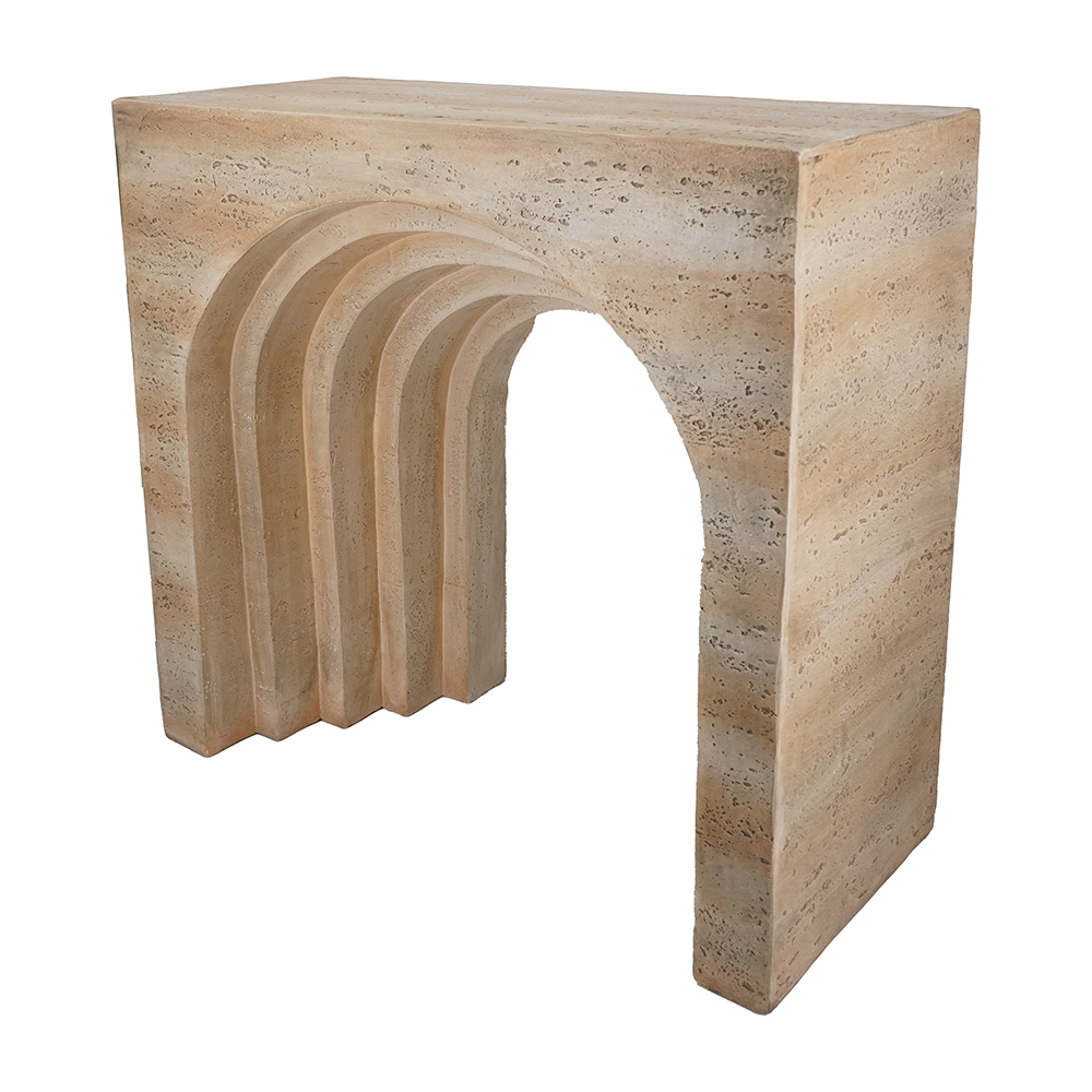 Elevate your home with this stunning arched console table made from lightweight magnesium oxide, mimicking elegant travertine. The unique Roman-inspired arch design creates a sculptural focal point, blending art and utility. Durable, easy to move, and low-maintenance for entryways or living rooms.