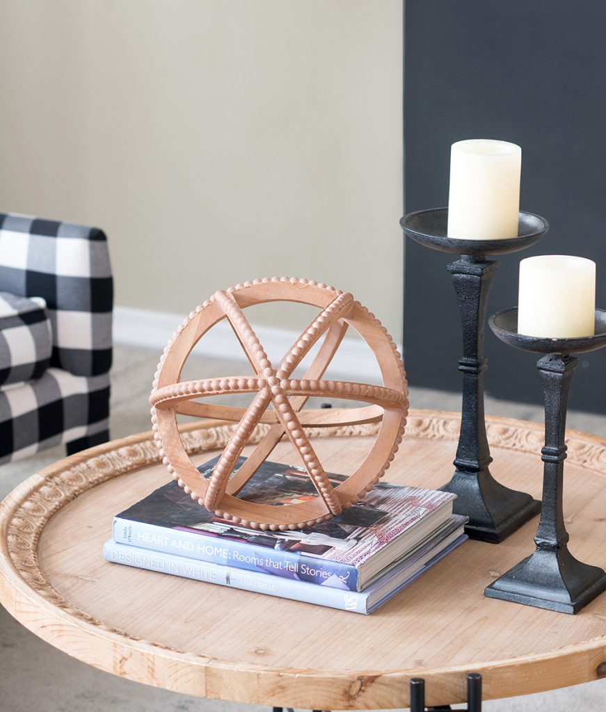 This large decorative ball table accent is made with a classic design that will bring out the transitional look and feel of your living room or bedroom. Constructed from solid fir wood with a series of round hoops, this accent has the characteristic look of a vintage scientific tool. This ball introduces a cool vintage feel to any entryway or high traffic space.