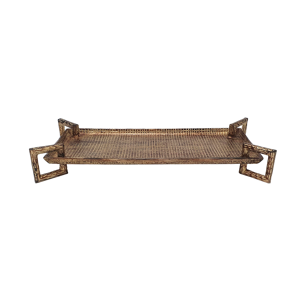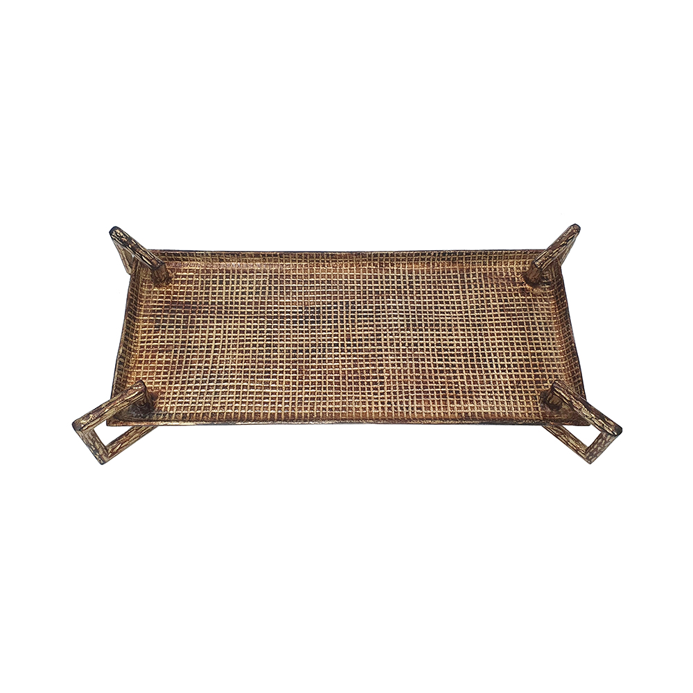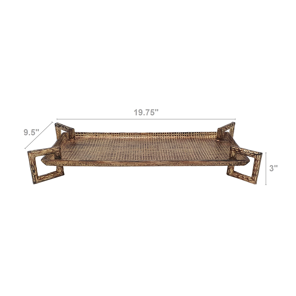 Elevate your hosting with this aluminum serving tray, featuring a hammered textured surface and angular handles in warm bronze finish for rustic luxury. It’s ideal for serving drinks, displaying decor, or organizing items on coffee tables or ottomans. Versatile for indoor use, this lightweight piece blends modern style with timeless appeal, perfect as functional decor or thoughtful gift.