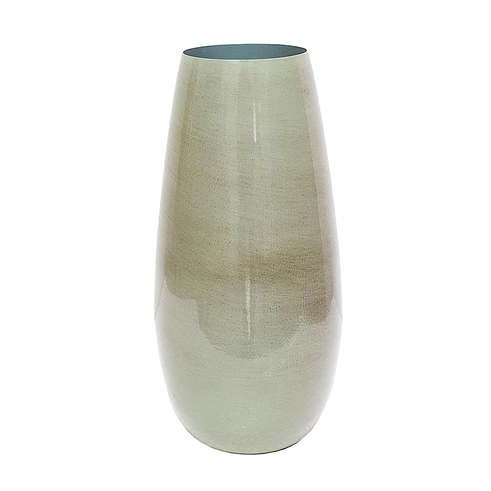 Celebrating the intrigue of modern minimalism, this vase features a tall, tapered silhouette with an olive green finish and subtle sheen. Crafted from durable iron, it offers lasting beauty and timeless appeal, drawing the eye whether displayed alone or paired with long-stemmed florals.