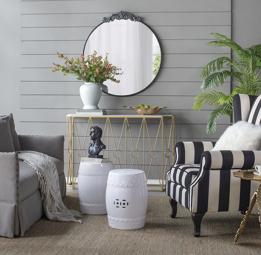 Incorporate baroque elements into a home with this modern twist on classic mirrors. The black framing makes this a striking focal piece.