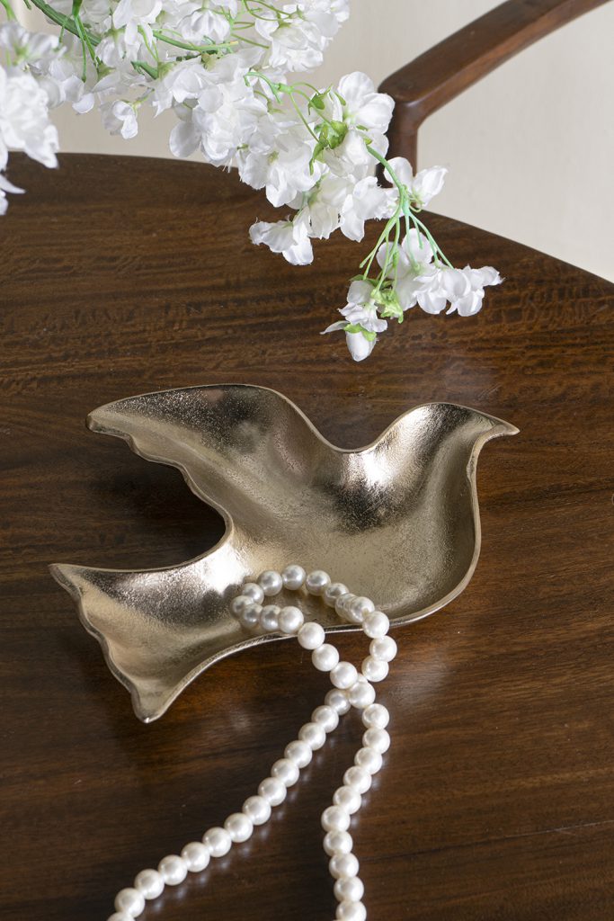 Inspired by the tranquil beauty of nature, this tray features a sleek dove silhouette, finished in metallic gold for a touch of luxury. Offering great versatility, this tray will elevate any space whether displayed alone, holding jewelry, or acting as a catchall dish.