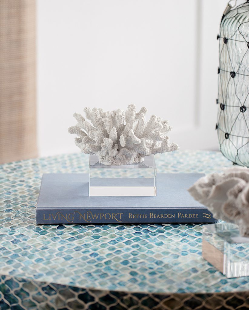 Blending nautical intrigue and minimalist charm, this decorative coral statue features intricate branches, a hand-painted white finish, and a sturdy glass base that adds height to the display.