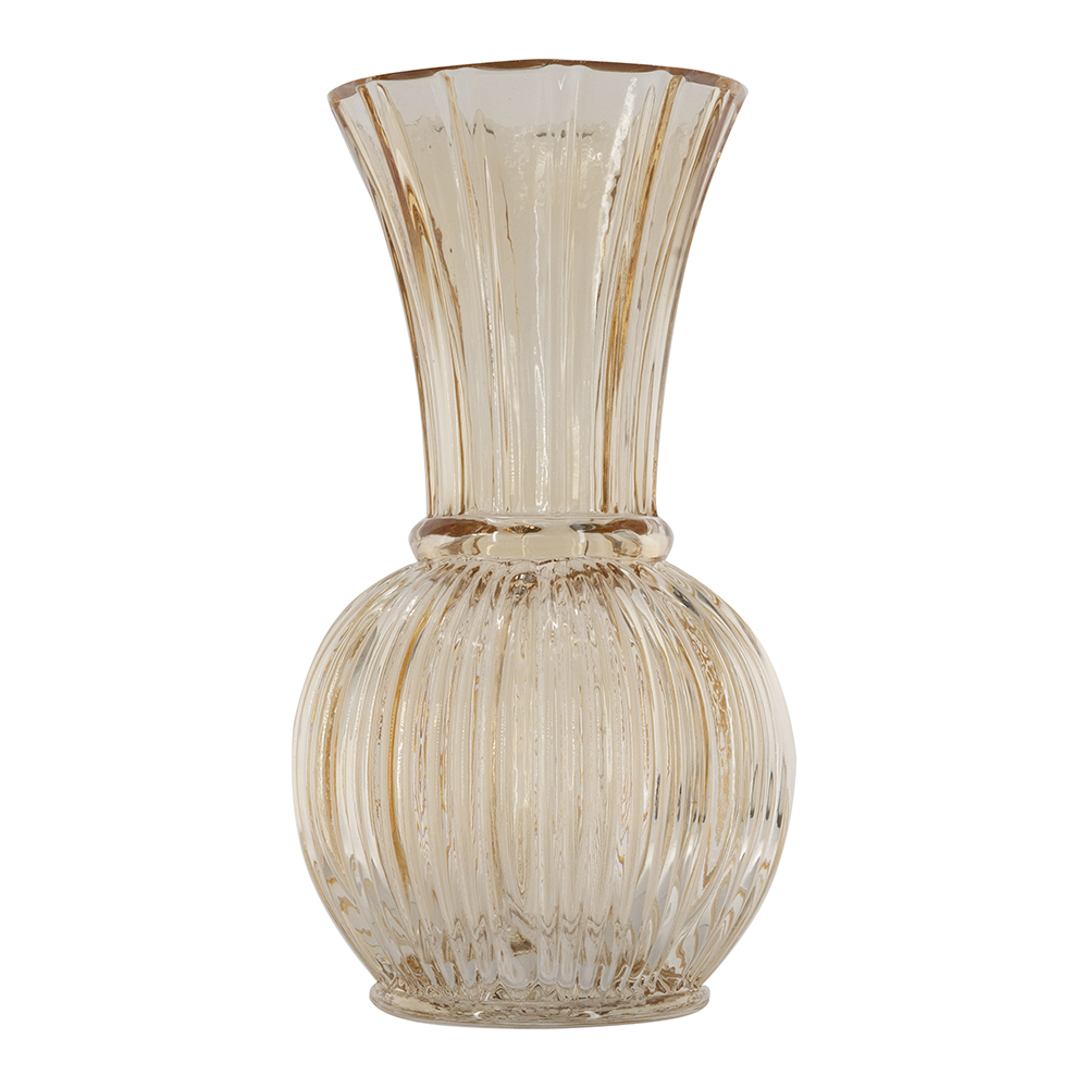 D5x9.6"H Amber Glass Accent Vase with Ribbed Texture and Flared Neck 4EA/CTN