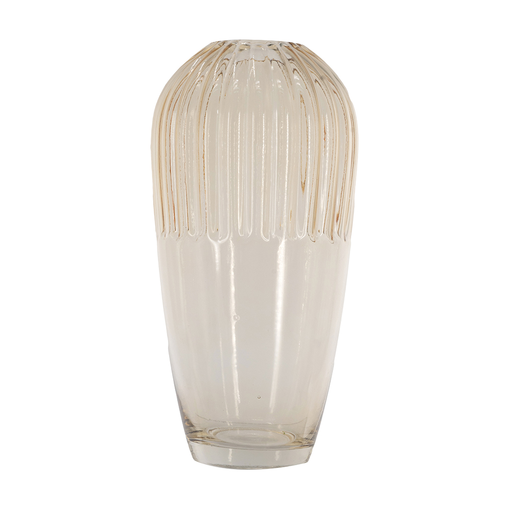 D5.7x11.8"H Tapered Glass Accent Vase with Ribbed Amber Finish 4EA/CTN