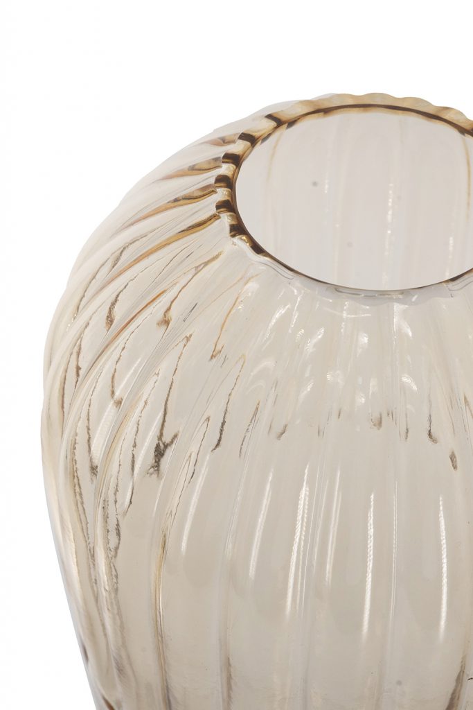Capturing the understated beauty of mid-century modern design, this glass vase features a tall, tapered silhouette, a soft amber tint, and a vertical ribbed texture. Whether displayed alone or filled with fresh flowers, it elevates any tabletop, mantel, or console.
