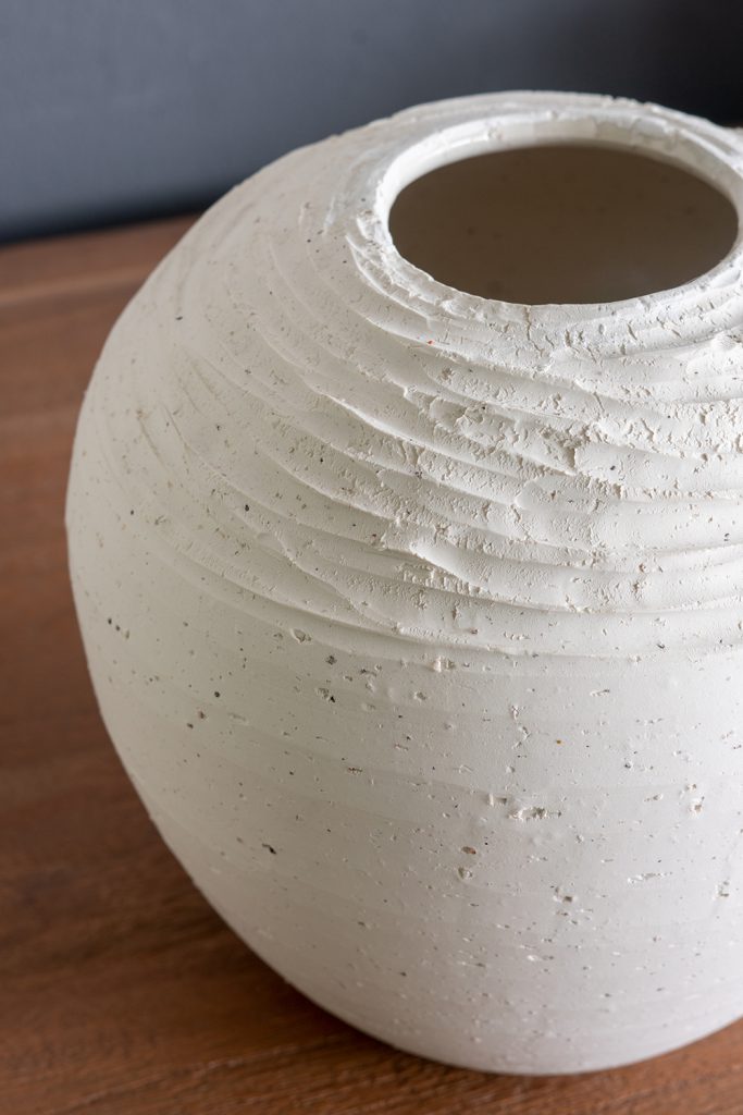 Inspired by the rugged allure of ancient pottery, this vase offers a unique, hand-pulled twist on the classic round silhouette. Featuring a speckled white finish, narrow opening, and earthy ridges, it will elevate any room in your home whether displayed alone or paired with vibrant flowers.