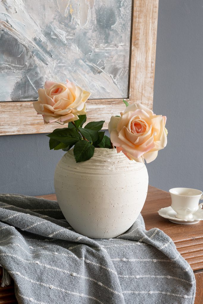 The simple shape and soft, neutral hue allow this vase to complement modern, wabi-sabi, farmhouse, and bohemian themes, ensuring it can slot into any setting seamlessly