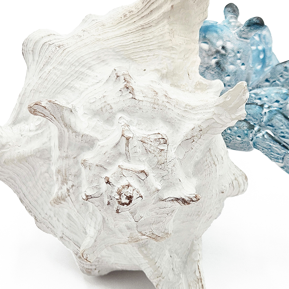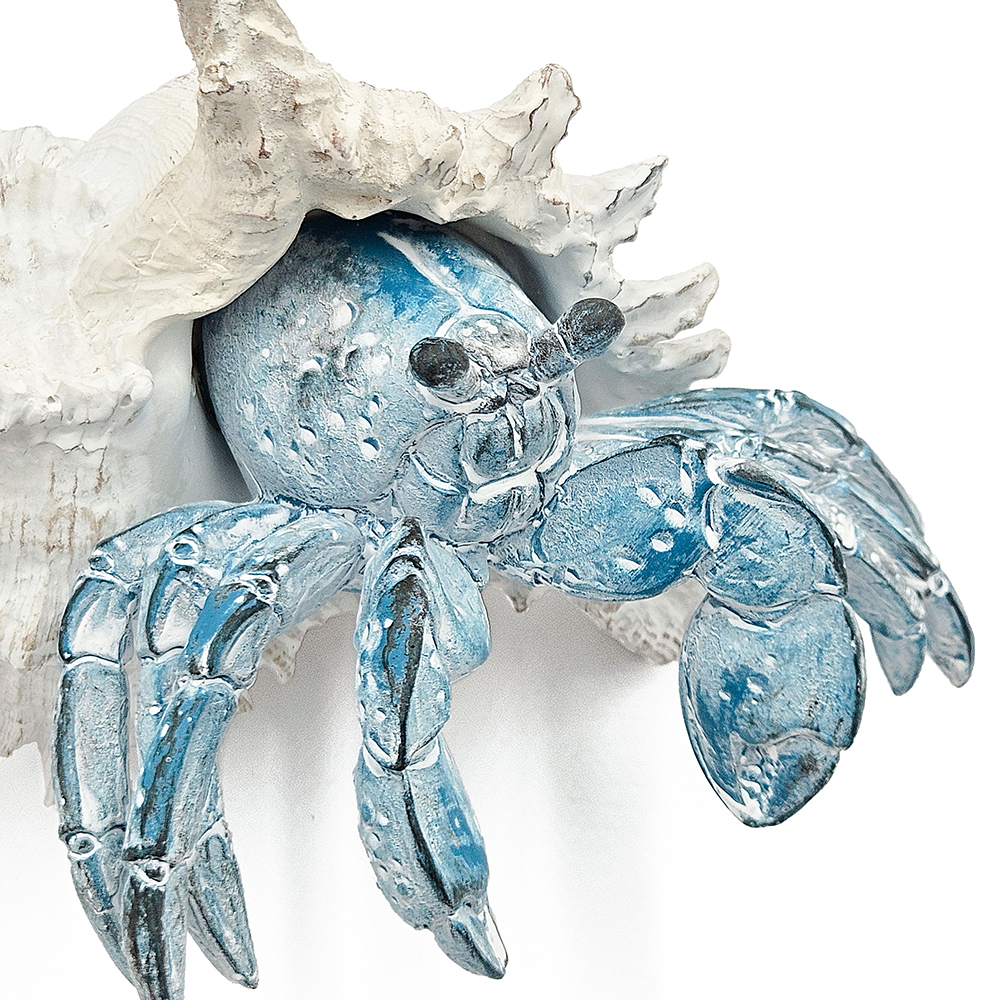 Masterfully crafted in the image of a hermit crab, this decorative figurine boasts a deep blue finish, an intricately detailed white shell, and an alluring texture. Perfectly sized for any tabletop, mantel, or counter, it will bring a burst of coastal charm to your home decor whether displayed alone or as part of a nautical ensemble.