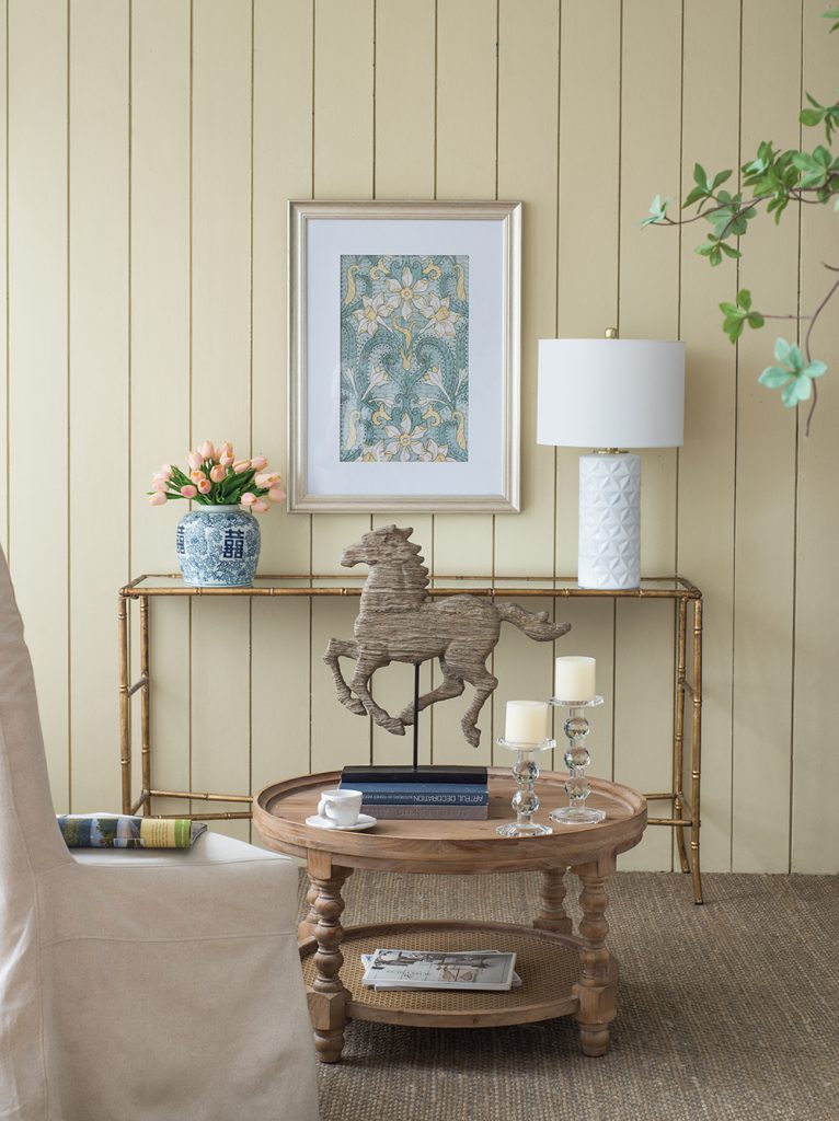 Caught in mid-air at full gallop, this majestic horse sculpture stirs the heart and evokes the spirit of the Old West. Stunning on a living room mantle, next to an entryway table, or positioned in an office, this sculpture exudes a classic vintage feel. The natural wood finish gives this piece the ability to enhance any room decor.