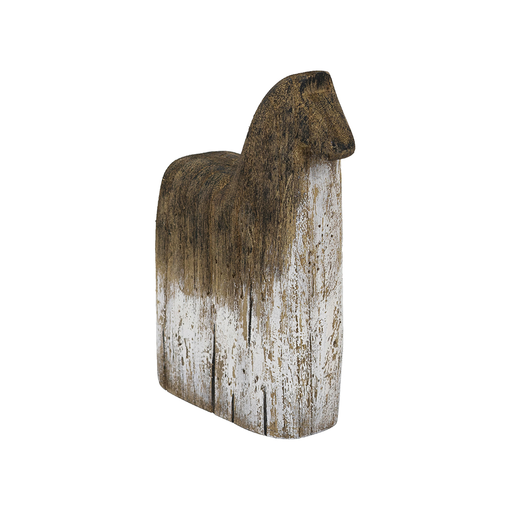 Capturing the rugged beauty of Scandinavian folk art, this horse sculpture features a charming minimalist design, finished with a gradient effect that flows from natural brown to weathered white. Crafted from 100% lightweight yet durable paulownia wood, it is sure to draw the eye for years to come with minimal maintenance.