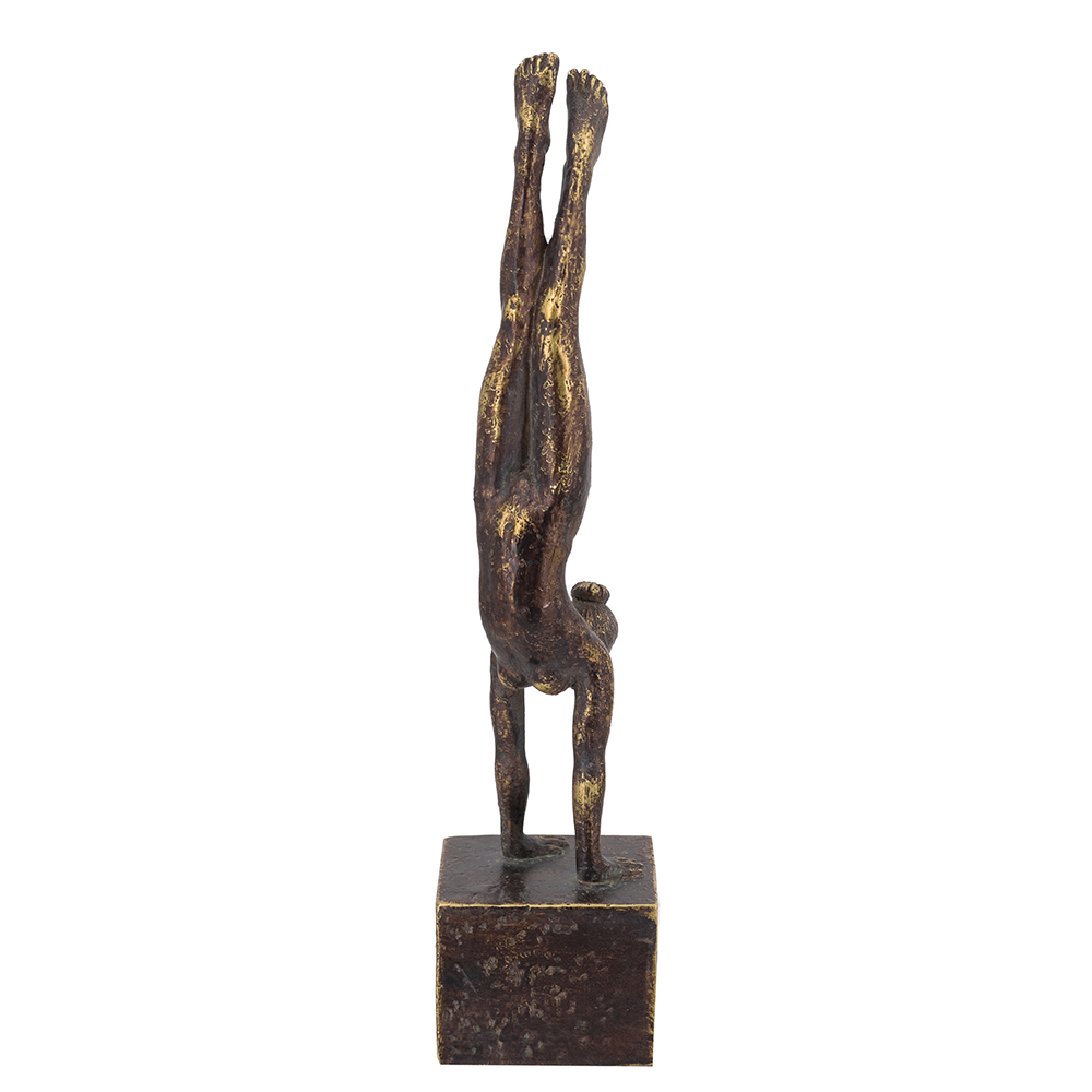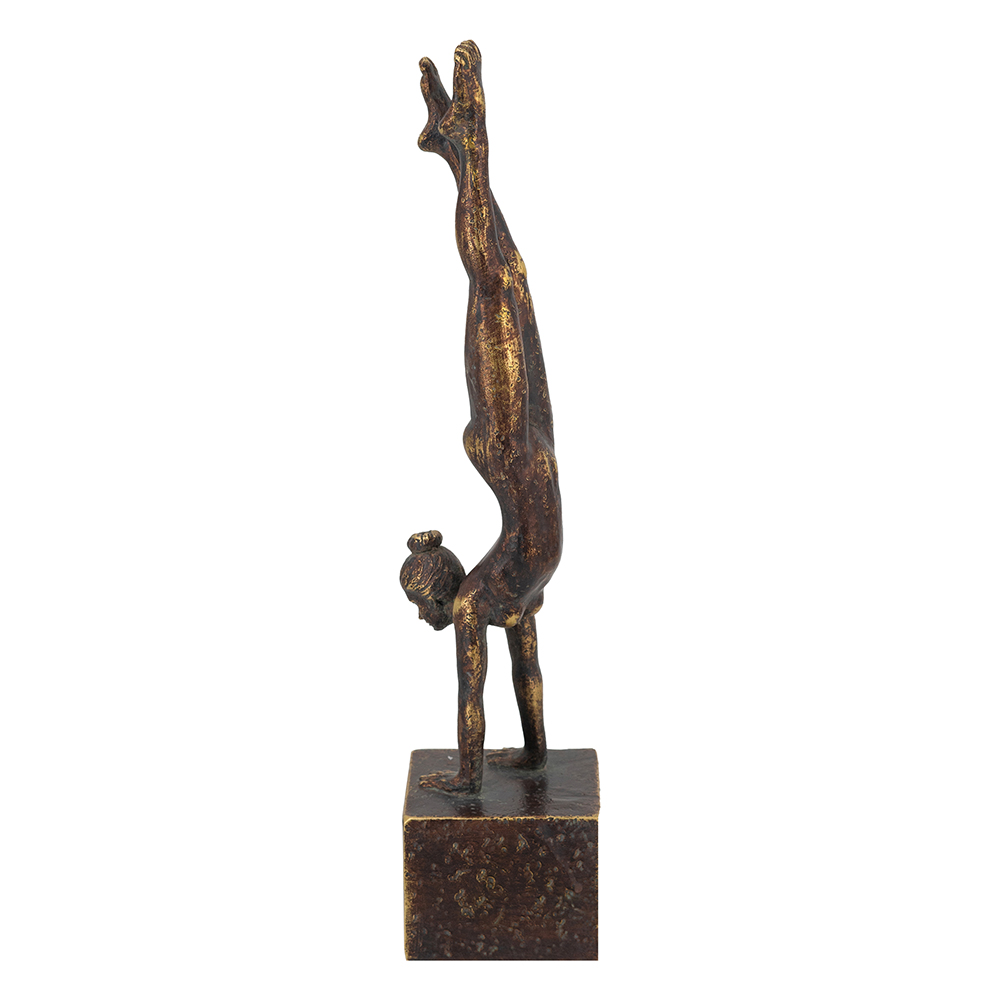 Celebrating the power and grace of gymnastics, this figurine showcases a stylized handstand pose, a refined antique bronze finish, and a bold pedestal base. Standing 11 tall, it draws the eye whether displayed alone or paired with a timeless centerpiece arrangement.