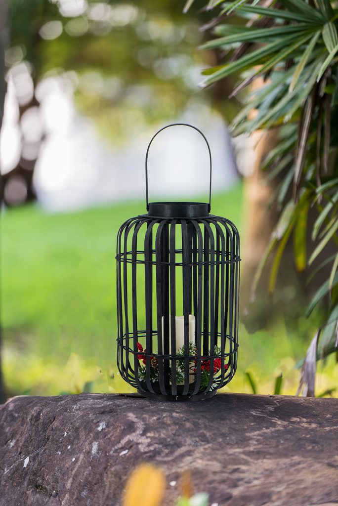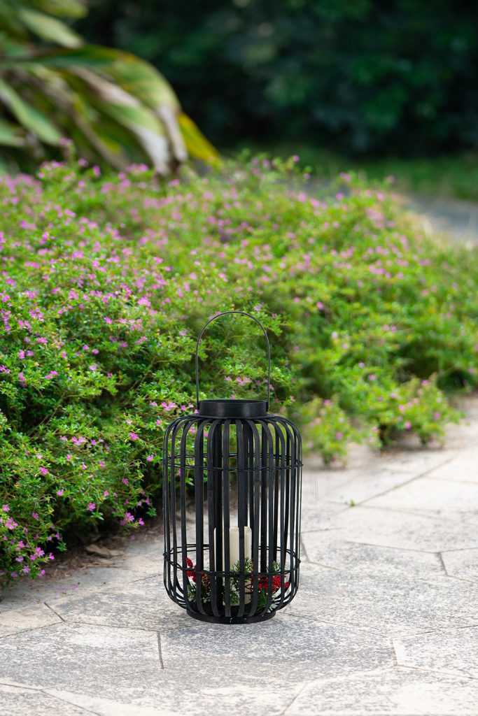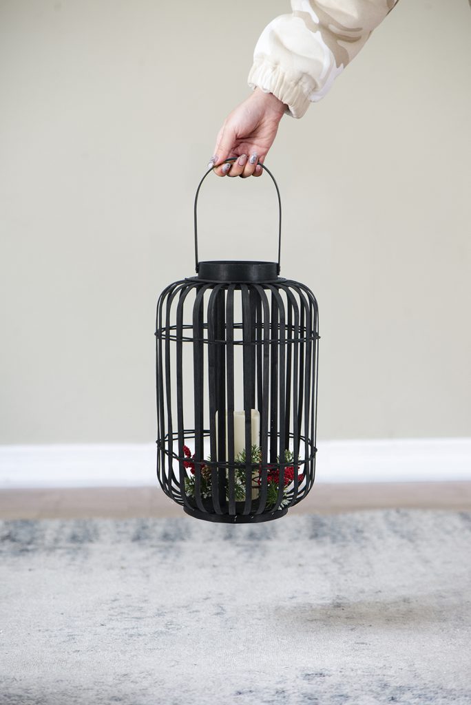 Inspired by the traditional woven baskets of Asia, this bamboo lantern features a tall cylindrical design with open, airy slats and a bold black finish. Complete with a realistic white LED candle, it will cast a warm, soothing glow throughout your living room, entryway, or covered patio.