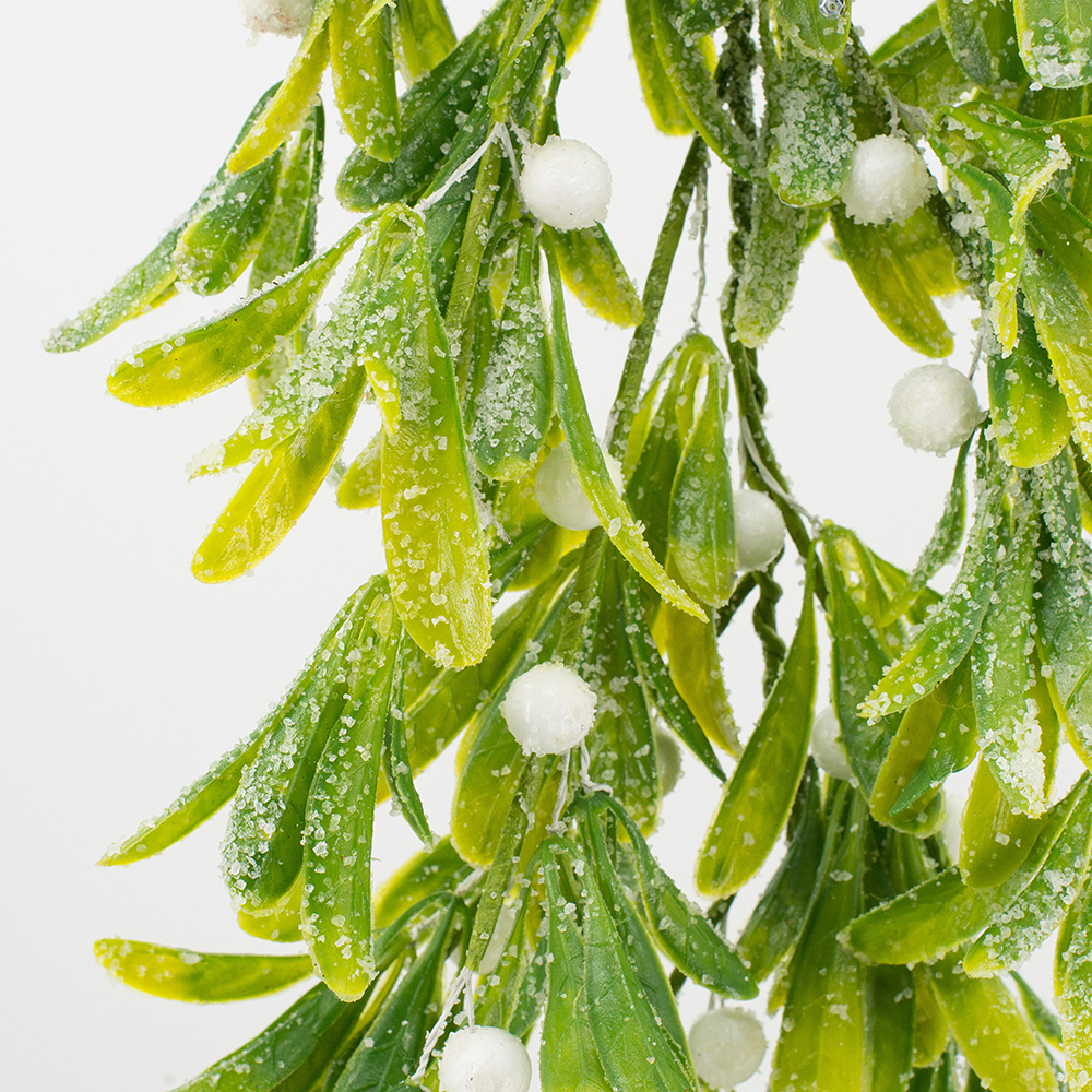 46″ Slender Green Leaf Garland Adorned With White Berries,And A Covering Of Shimmery Frost