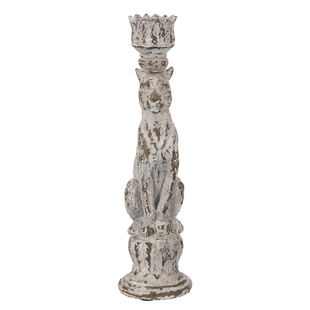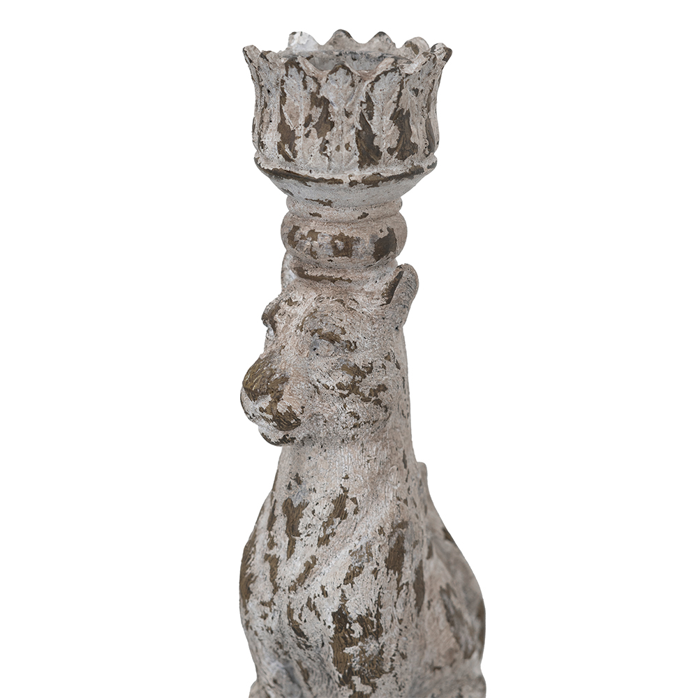 Blending grand old-world beauty with a hint of safari charm, this candle holder features an intricately sculpted leopard, finished in antique white with a crown-like top. Pair it with a taper candle to cast a soft, relaxing glow throughout any living room, entryway, office, or bedroom.