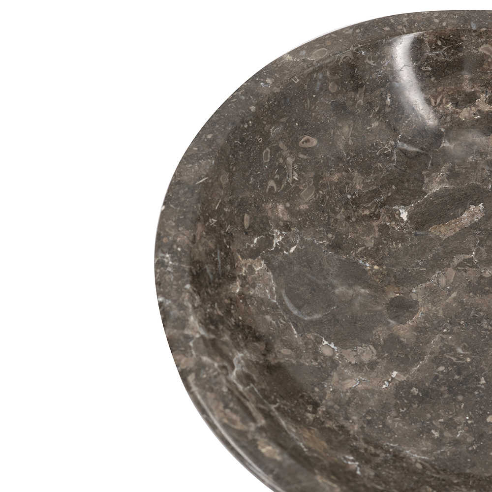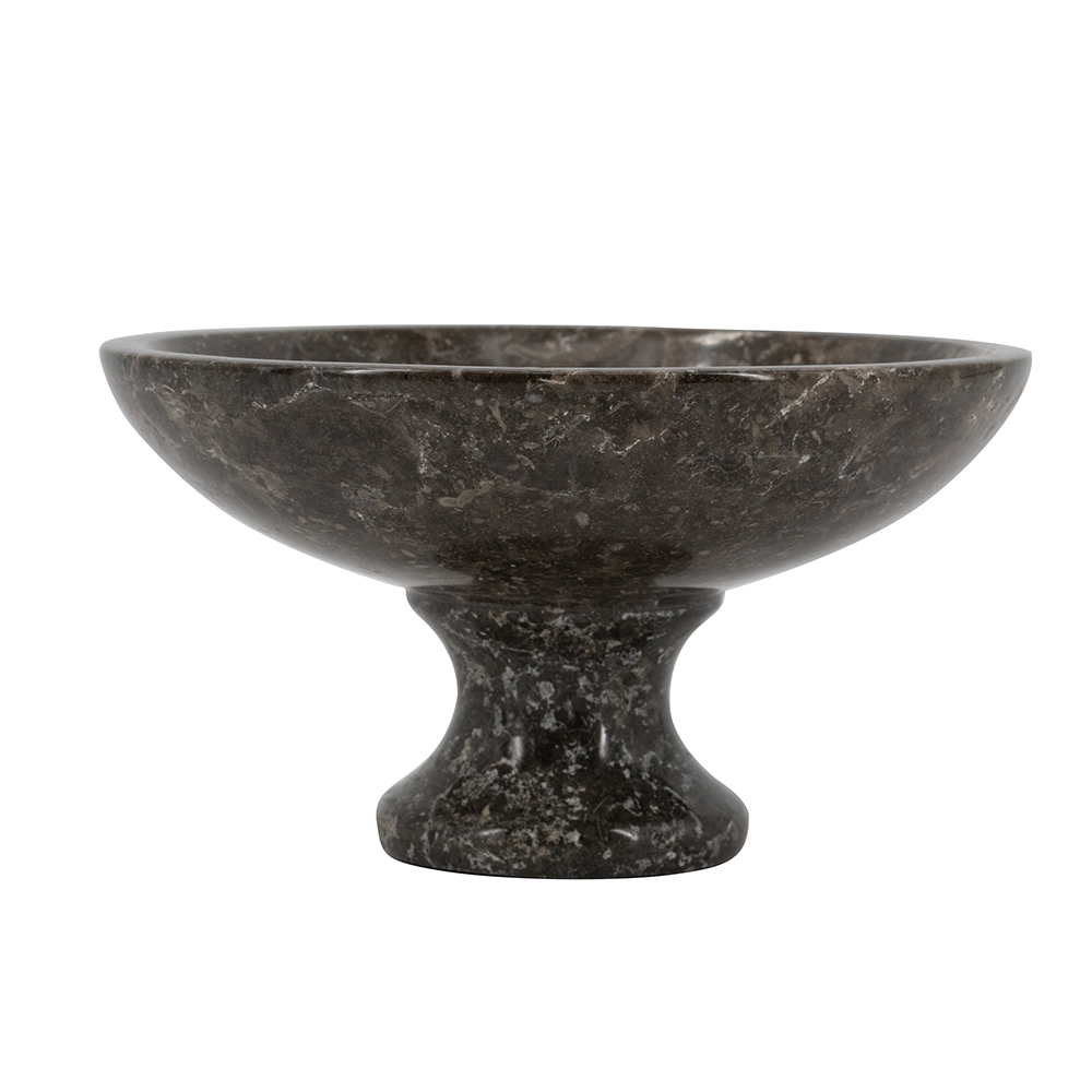 Carved from genuine marble, this pedestal bowl showcases dark gray tones with subtle white veining and a glossy polish for refined elegance. Its classic compote shape elevates any display, perfect as a fruit holder, candy dish, or sculptural piece in modern, traditional, or minimalist interiors. Heavyweight and durable, it adds a touch of natural luxury to tables or shelves for enduring beauty.