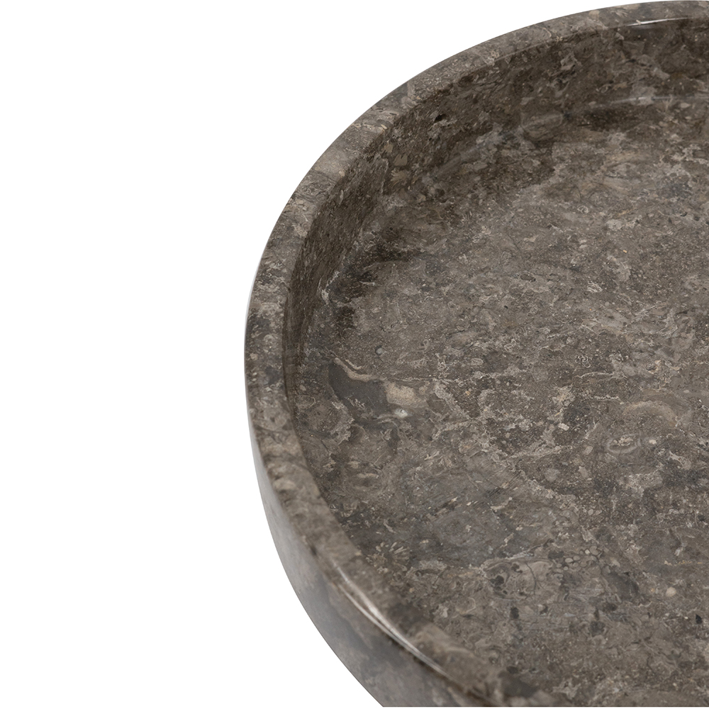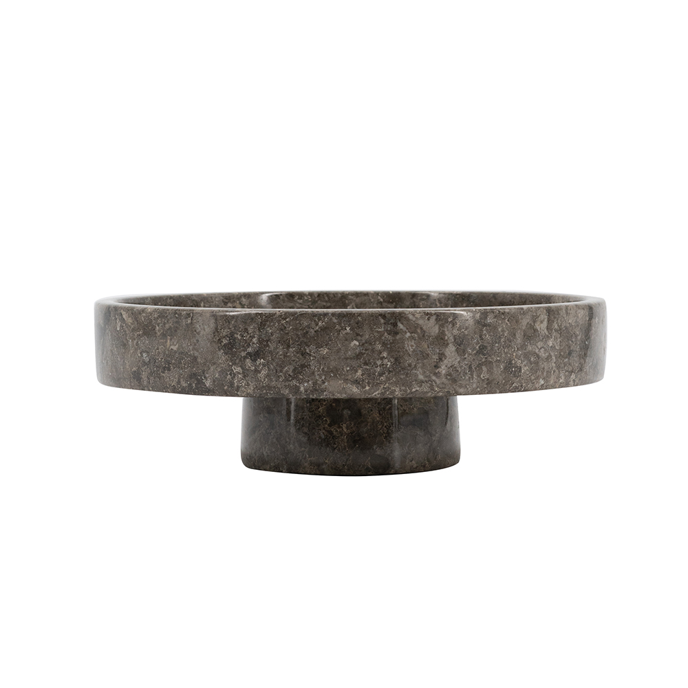 This refined pedestal bowl, sculpted from authentic marble, displays deep gray hues with subtle white veining and a glossy finish for classic sophistication. Its wide, shallow design on a sturdy base is perfect for fruits, candles, or as a sculptural piece in modern, farmhouse, or minimalist settings. Heavy and durable, it brings natural elegance to any table or shelf for timeless appeal.
