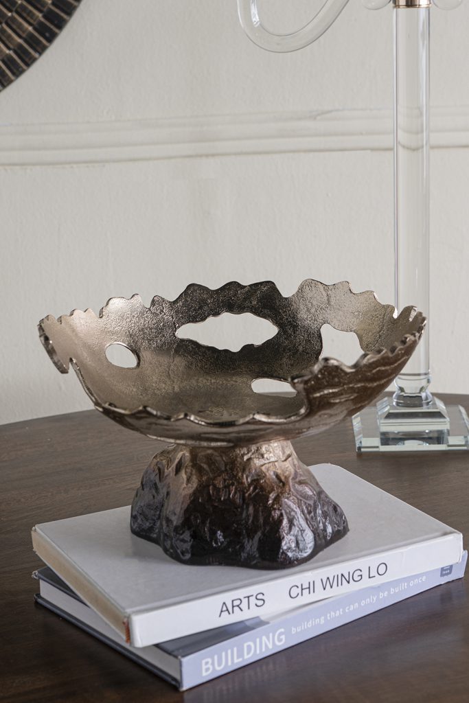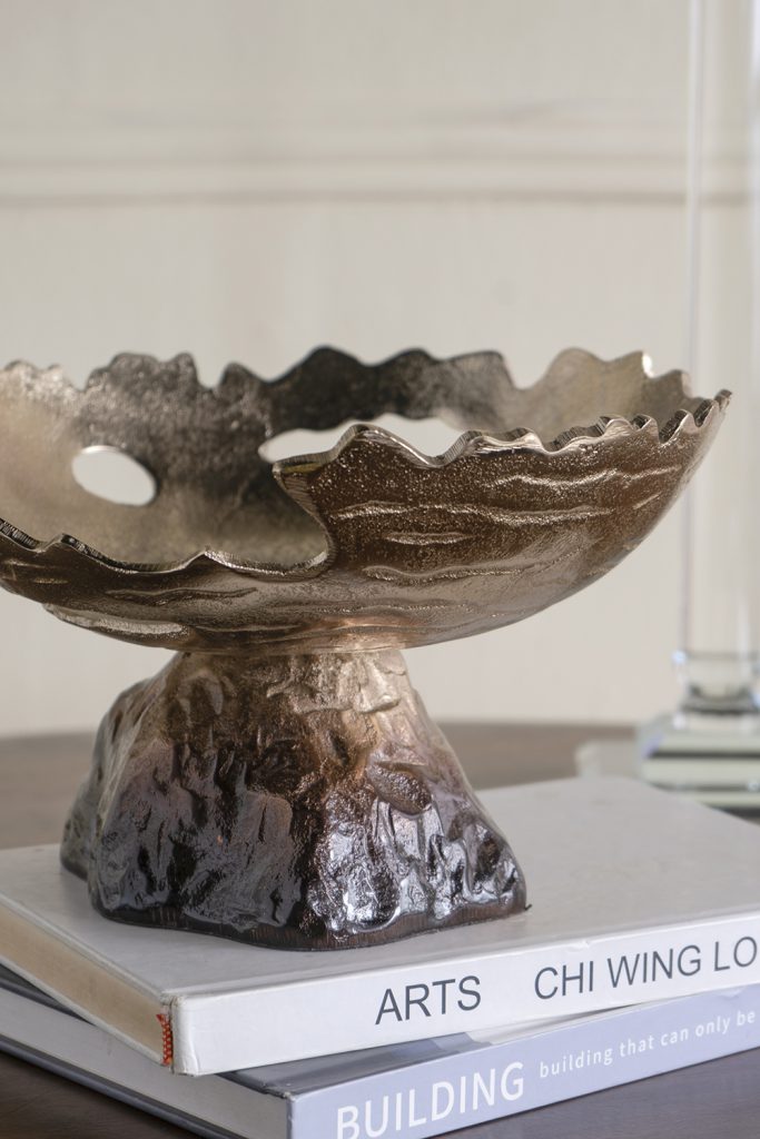 Drawing inspiration from the raw, effortless beauty of nature, this pedestal bowl showcases a rustic design with an ombre transition from rich gold to deep bronze. Ideally sized to adorn your living room mantel, kitchen island, or entryway console, it will capture the eye when displayed empty or paired with decorative accents.