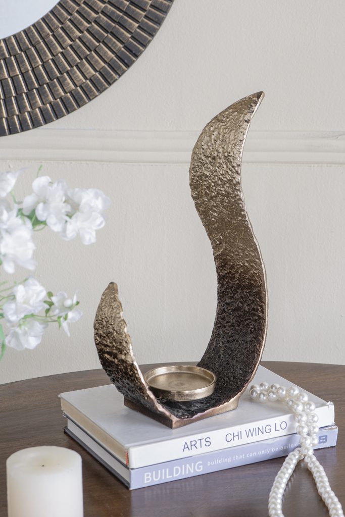 Showcasing the beauty of abstract design, this candle holder boasts a fluid, curving silhouette, an organic texture, and an irresistible ombre transition that moves from rich gold to deep bronze. Perfectly sized for standard pillar candles, it will spread a relaxing ambiance throughout any room while elevating your existing decor.