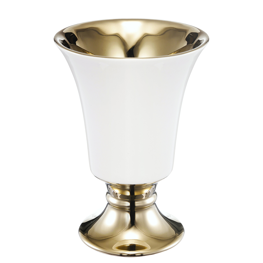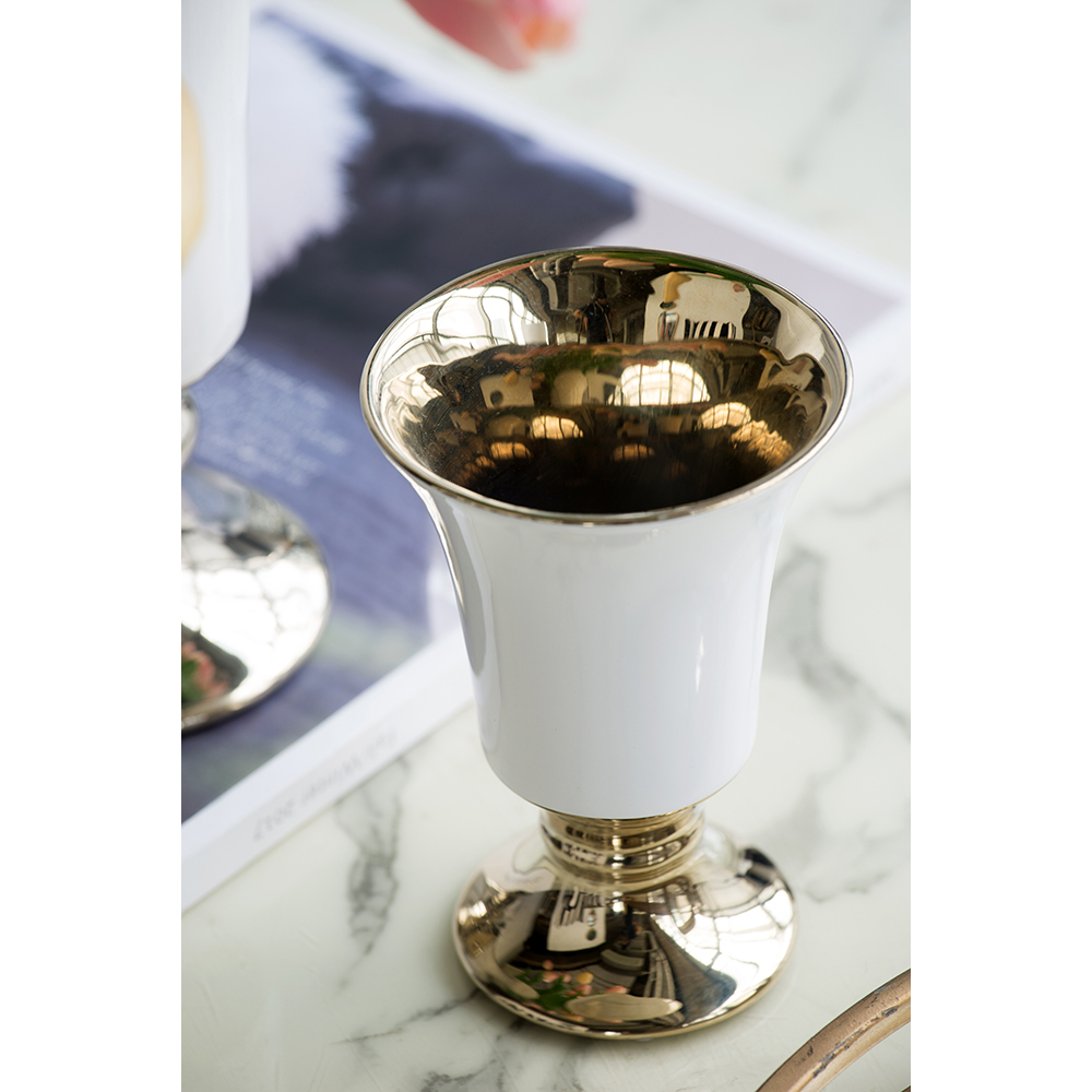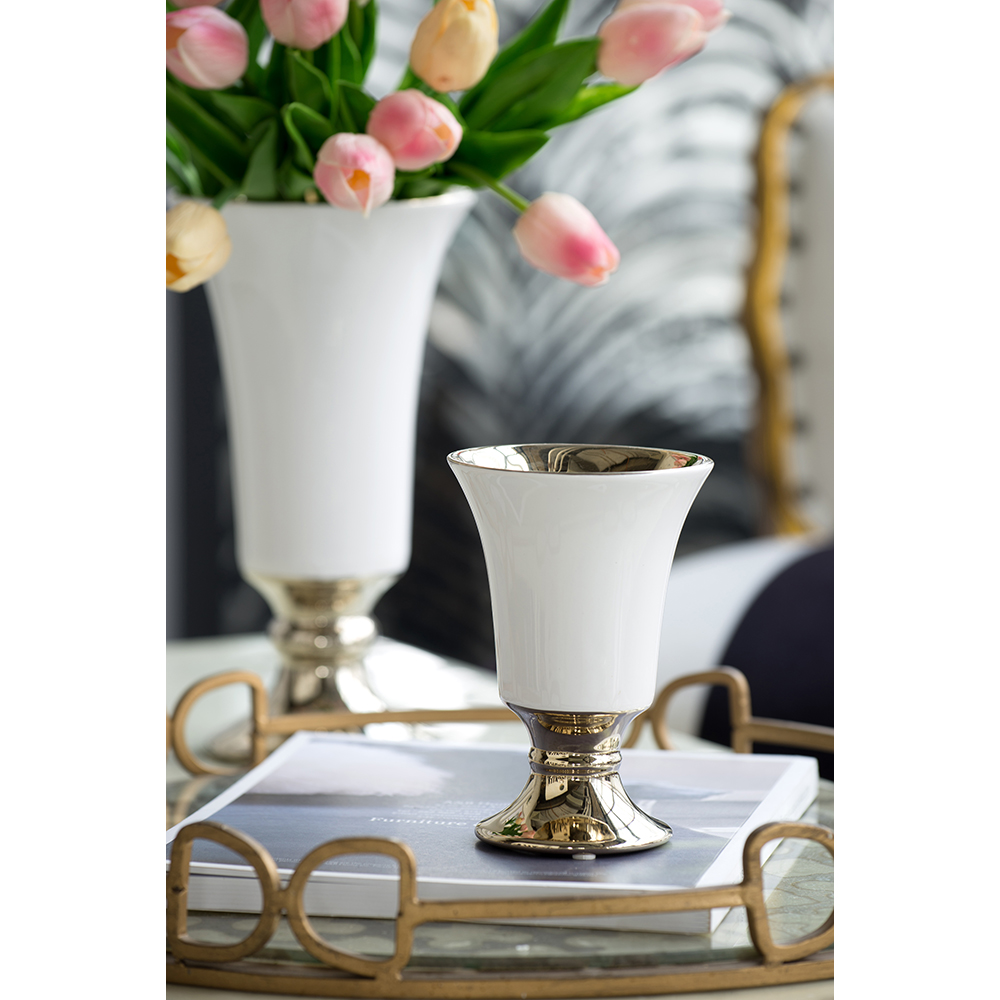 Combining a classic design with a crisp finish, the Elliott Pedestal Vase offers vintage appeal in a distinctively modern way. The gold edging and contrasting white finish make this piece stunning yet versatile. Perfect for a chic office, lofty foyer, or grand front porch, the Elliot Vase provides the perfect way to create a custom floral display.