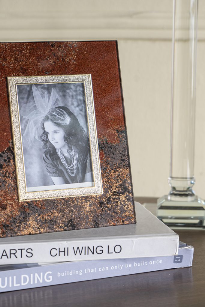 Inspired by antique Victorian design, this photo frame features a classic rectangular silhouette, a richly marbled finish in warm earthy tones, and an elegant gold border. Perfect for nightstands, mantels, or tabletops, it offers a timeless way to showcase your most cherished memories.