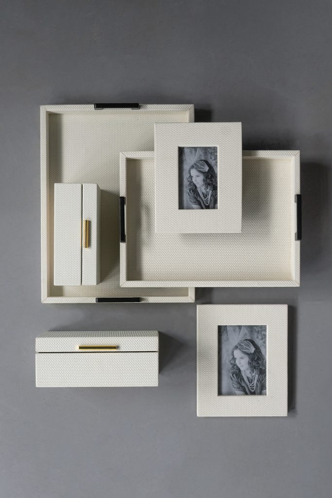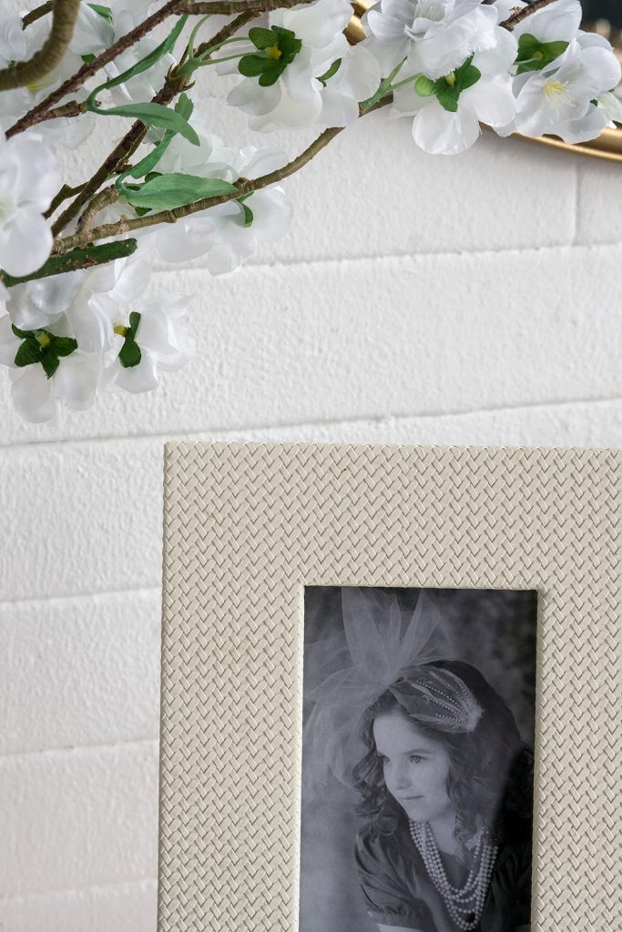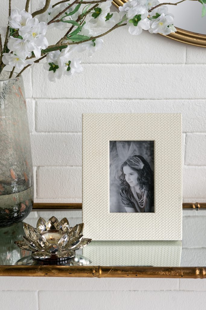 Drawing inspiration from luxury fashion, this photo frame showcases a textured faux leather design finished in crisp white to catch the eye. Complete with an elegant glass front, it elevates any space while offering lasting protection for your cherished memories.