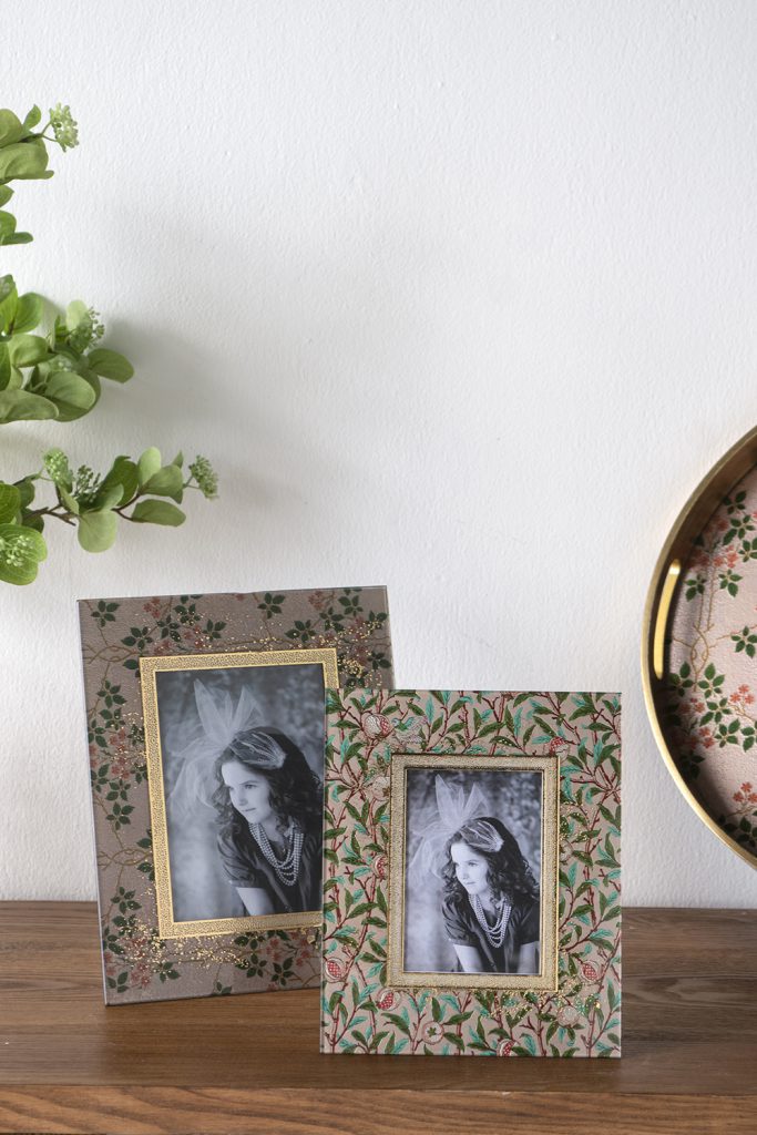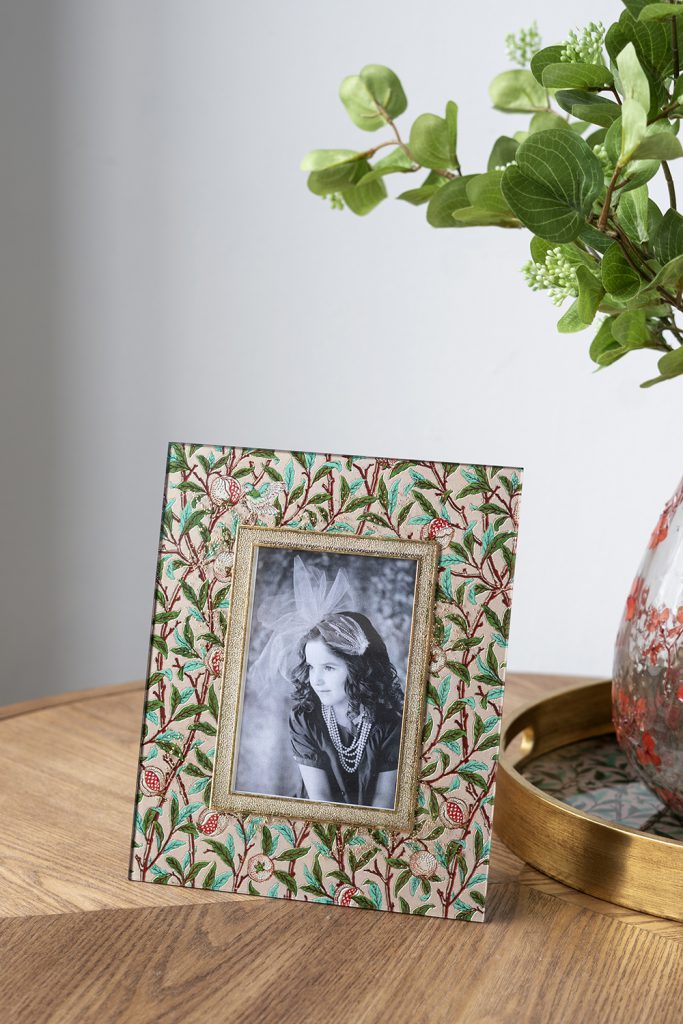 Inspired by vintage hand-painted art, this photo frame features a classic rectangular silhouette adorned with sprawling botanical motifs in shades of green, pink, and gold. Perfectly sized for a nightstand, mantel, or tabletop, it protects your cherished memories while infusing any space with a burst of garden charm.