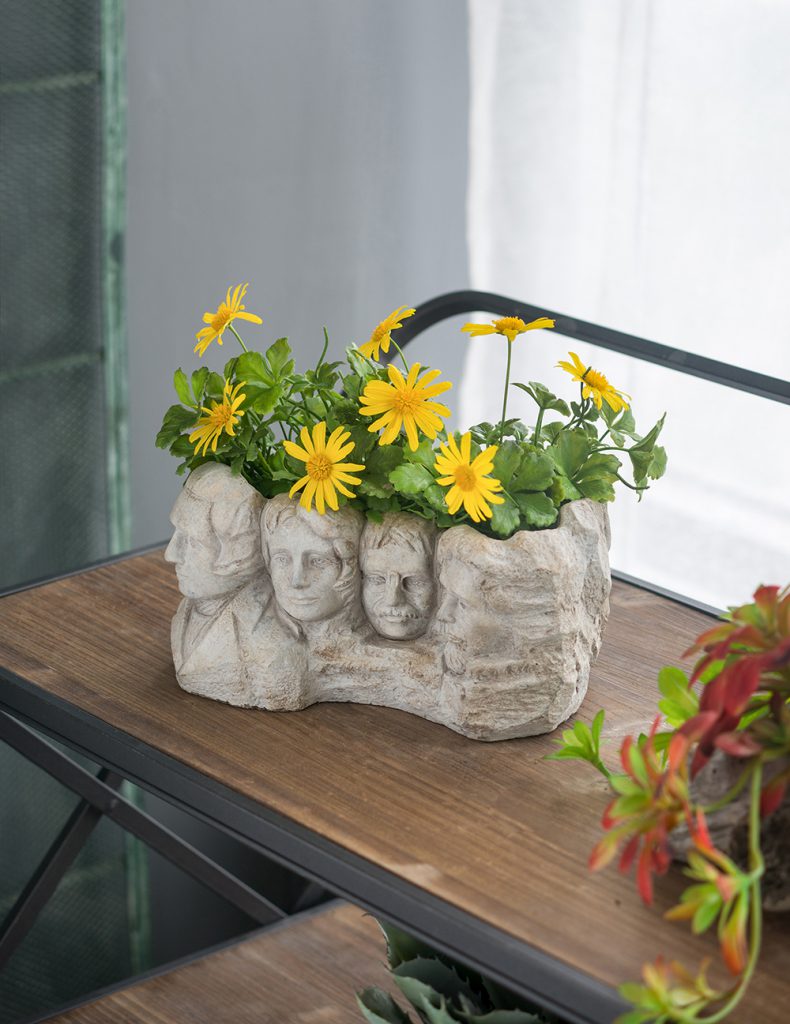 A unique flower pot with transitional flair,this president cement planter is a one-of-a-king decoration.Although it’s an eye-catching accent piece on its own,it can also hold succulents or flowers.Place this cement planter on a living room mantel,or use it in a centerpiece on the dining room table.