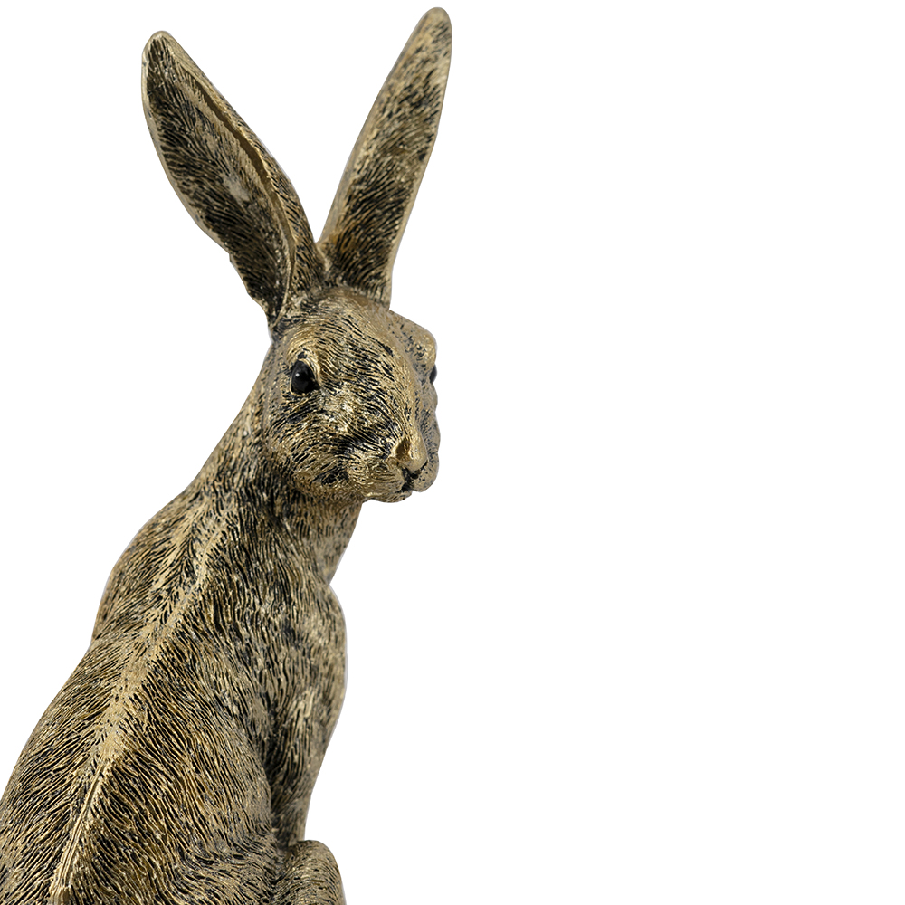 Enhance your space with this adorable handcrafted resin rabbit sculpture, capturing a alert sitting pose with perked ears and detailed fur in an antique gold finish for elegant shine. At 8.5″, it’s ideal for shelves, desks, or tables, adding playful charm and rustic whimsy. Perfect as decor or a sweet gift for bunny lovers, blending lifelike features with artistic minimalism for enduring appeal.