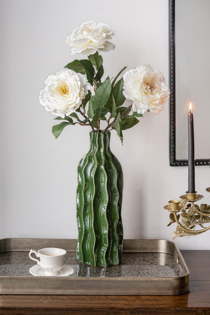 Capturing the graceful beauty of early summer gardens, this artificial peony features a long, slender stem, lifelike green leaves, and layered white petals. Whether paired with a tall vase, centerpiece bouquet, or event display, it infuses any space with romantic charm.