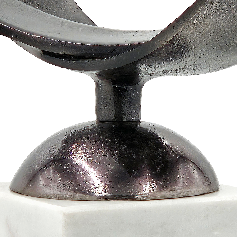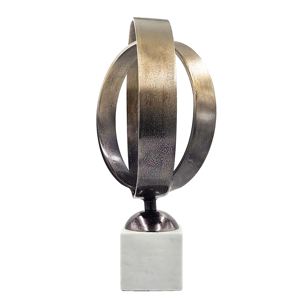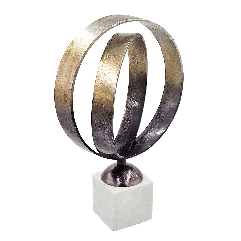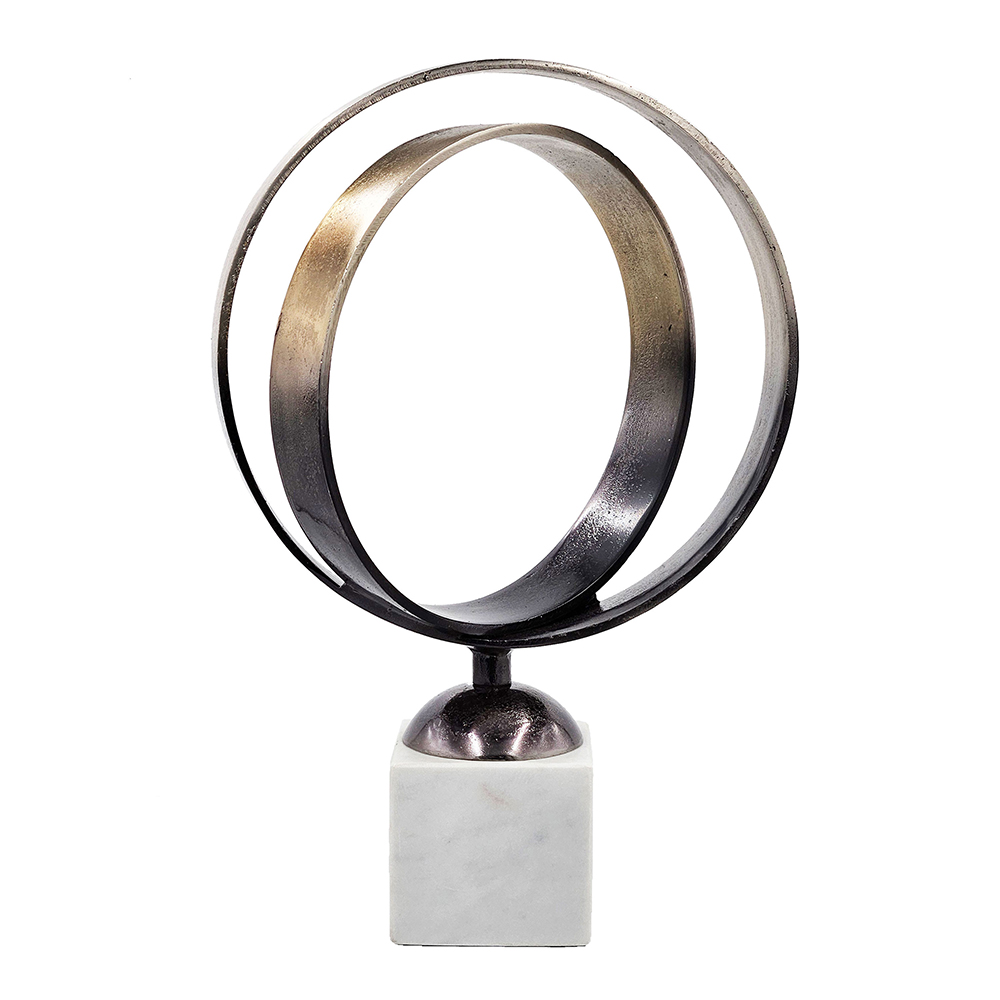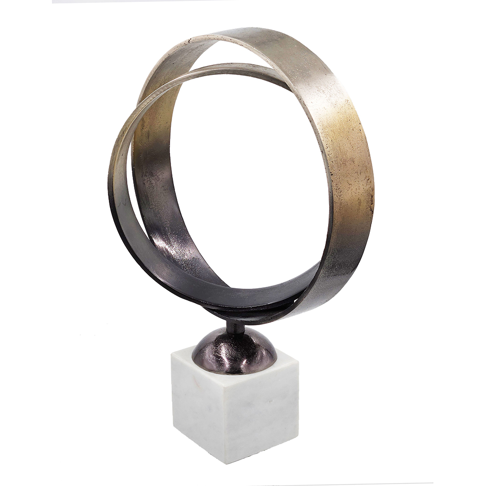 Add movement and style to your space with the Luberton double ring statuary. Mounted on a white marble base and finished in deep antique bronze this will bring contrast and a contemporary touch to any home.