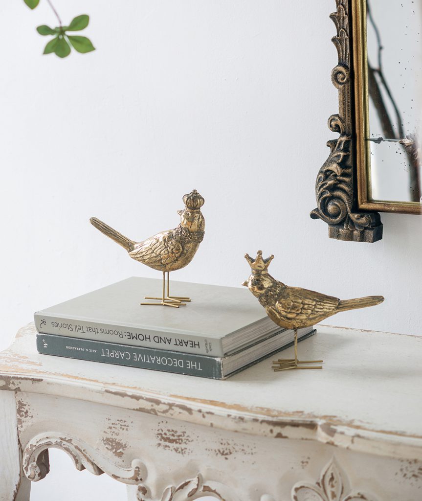 Blending the delicate beauty of nature with regal storybook charm, this set includes two resin bird figurines, each featuring an intricate texture, a glistening gold finish, and a stately crown. Perfectly sized for a living room mantel, office shelf, or entryway table, they bring a touch of playful intrigue to any space whether displayed together or separately.