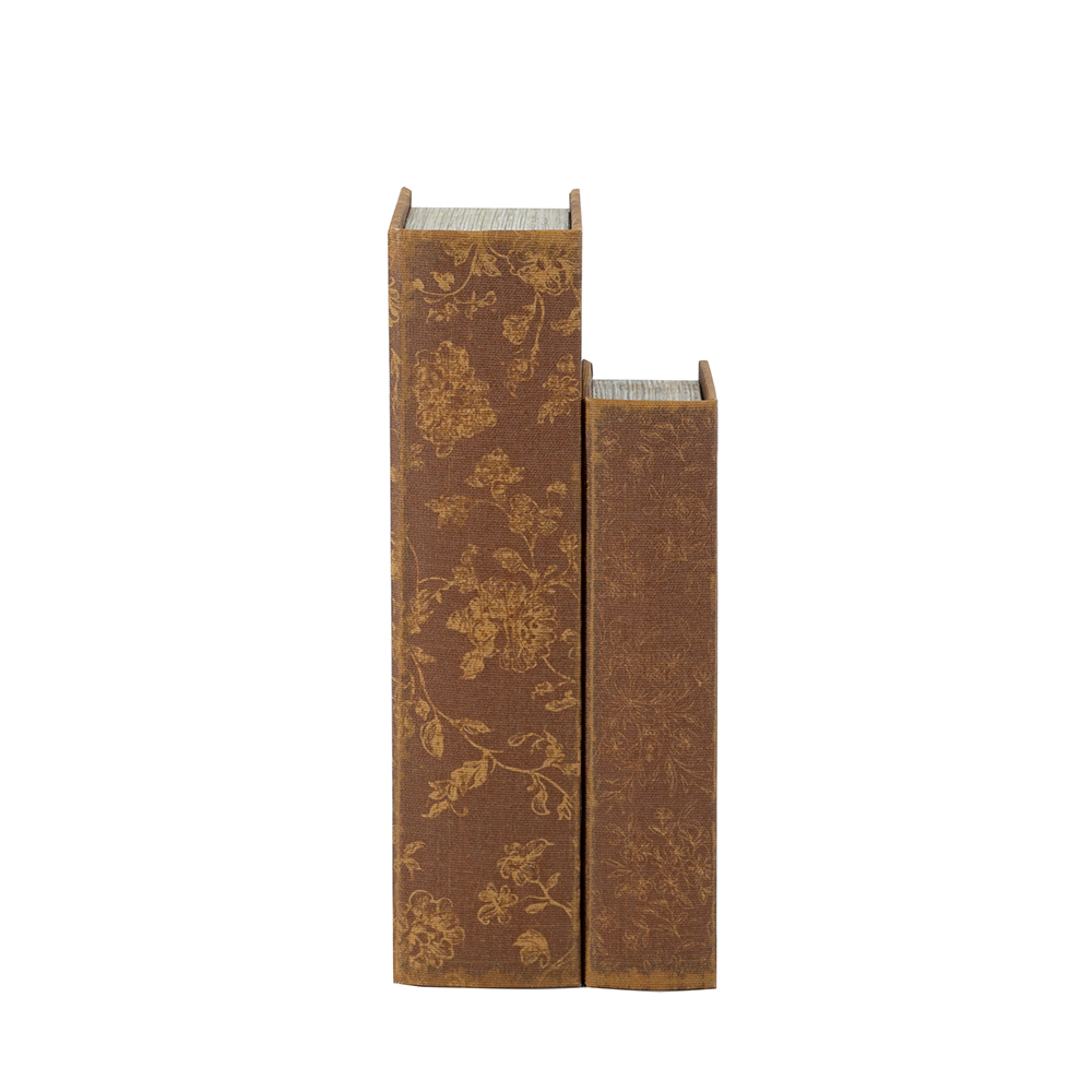 Organize with sophistication using this set of 2 vintage-inspired book boxes, featuring elegant lady portraits amid golden floral patterns in warm brown tones on durable MDF and linen for a romantic, antique touch. Perfect for storing trinkets on shelves or desks, adding Victorian charm to any room. Ideal as functional decor or gift, blending timeless art with practical hidden storage.