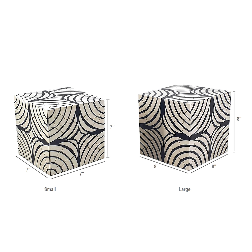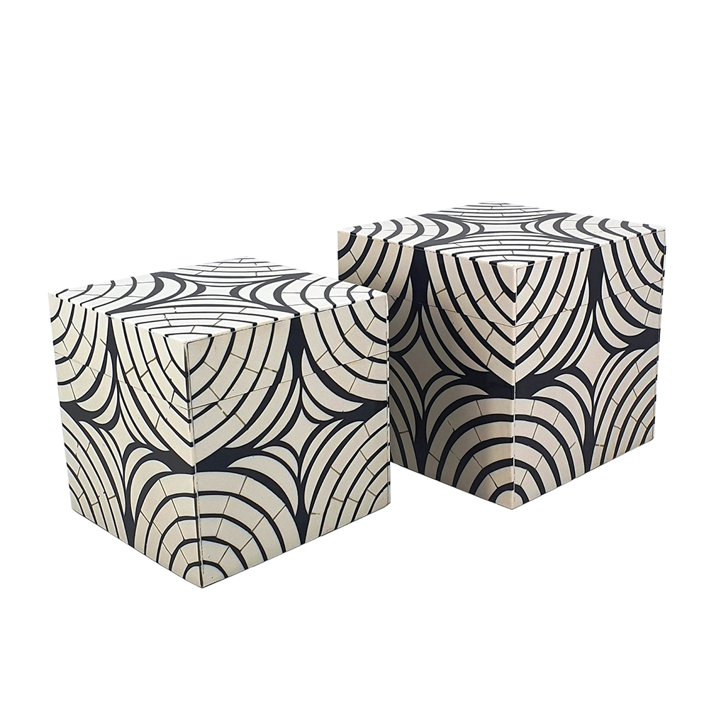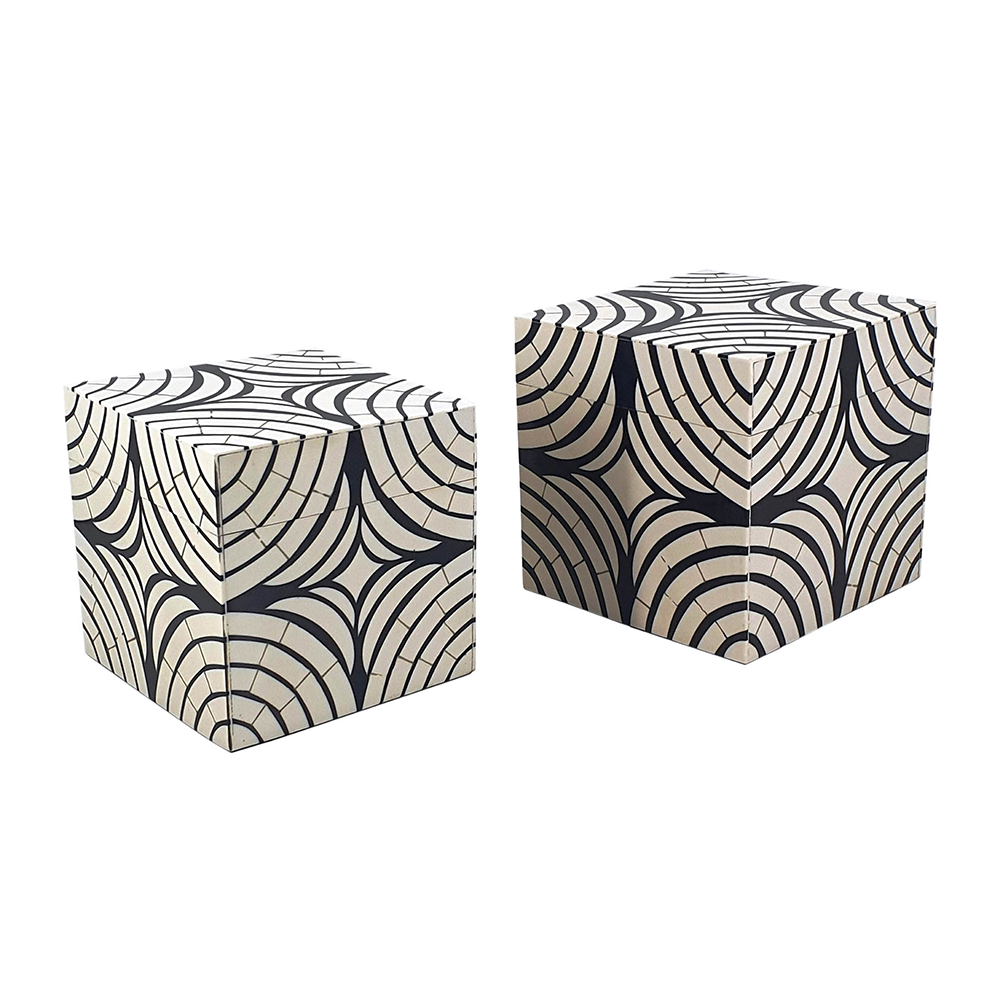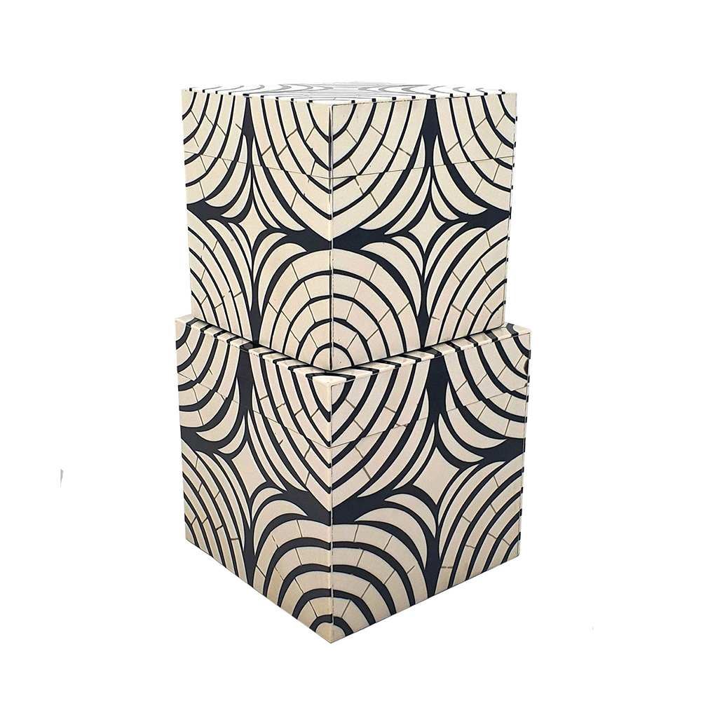 Store your items in style with this set of Daytona boxes. Featuring a square structure made of high-quality wood and resin materials, these boxes are sure to keep your room clutter-free without consuming too much space. Either stacked or displayed side by side, these set of boxes is definitely an eye-catcher with its alluring black and white circular prints.