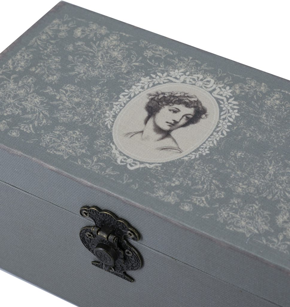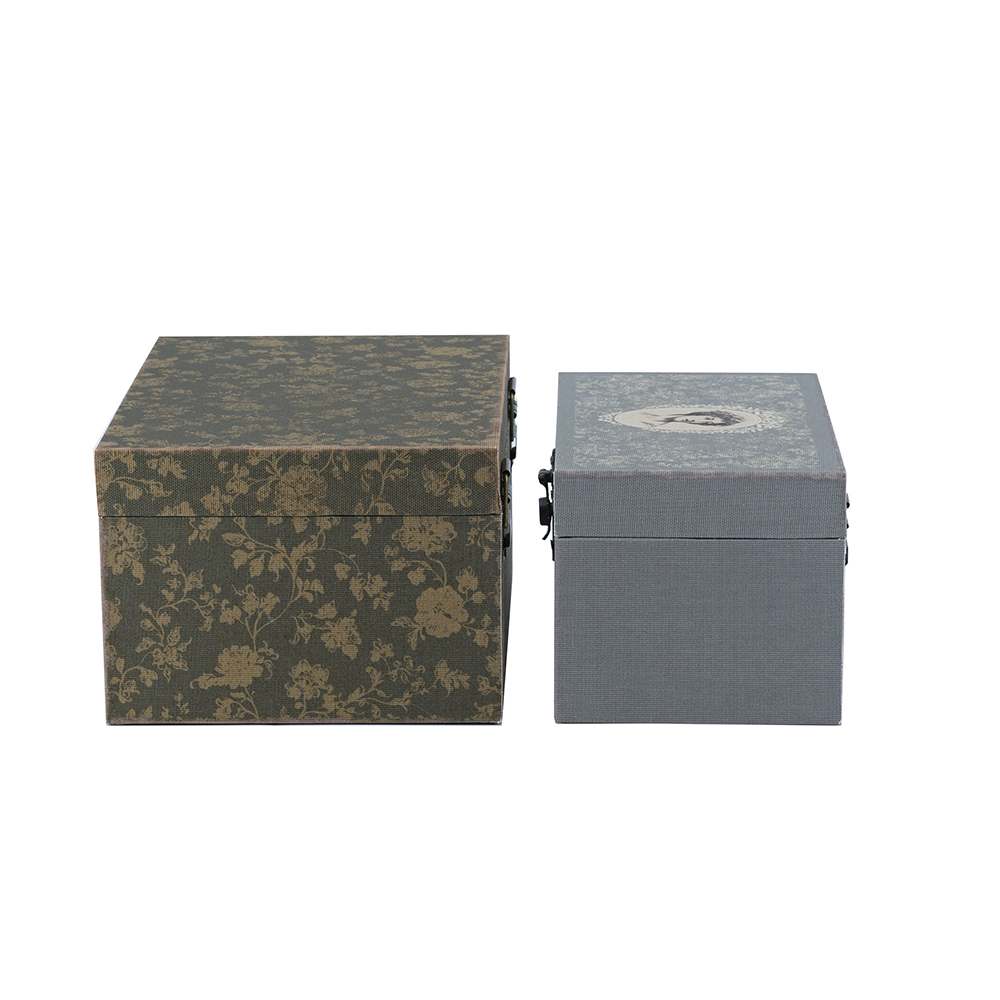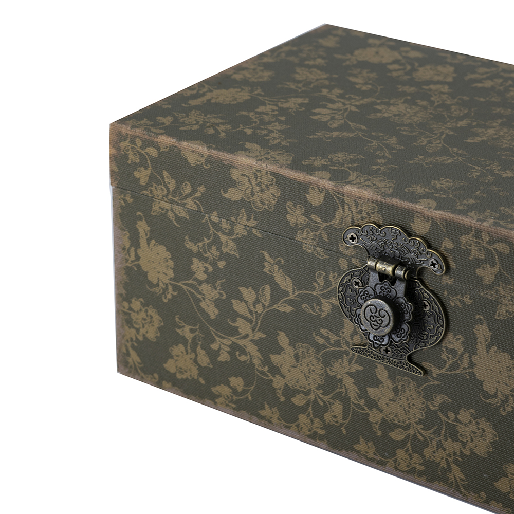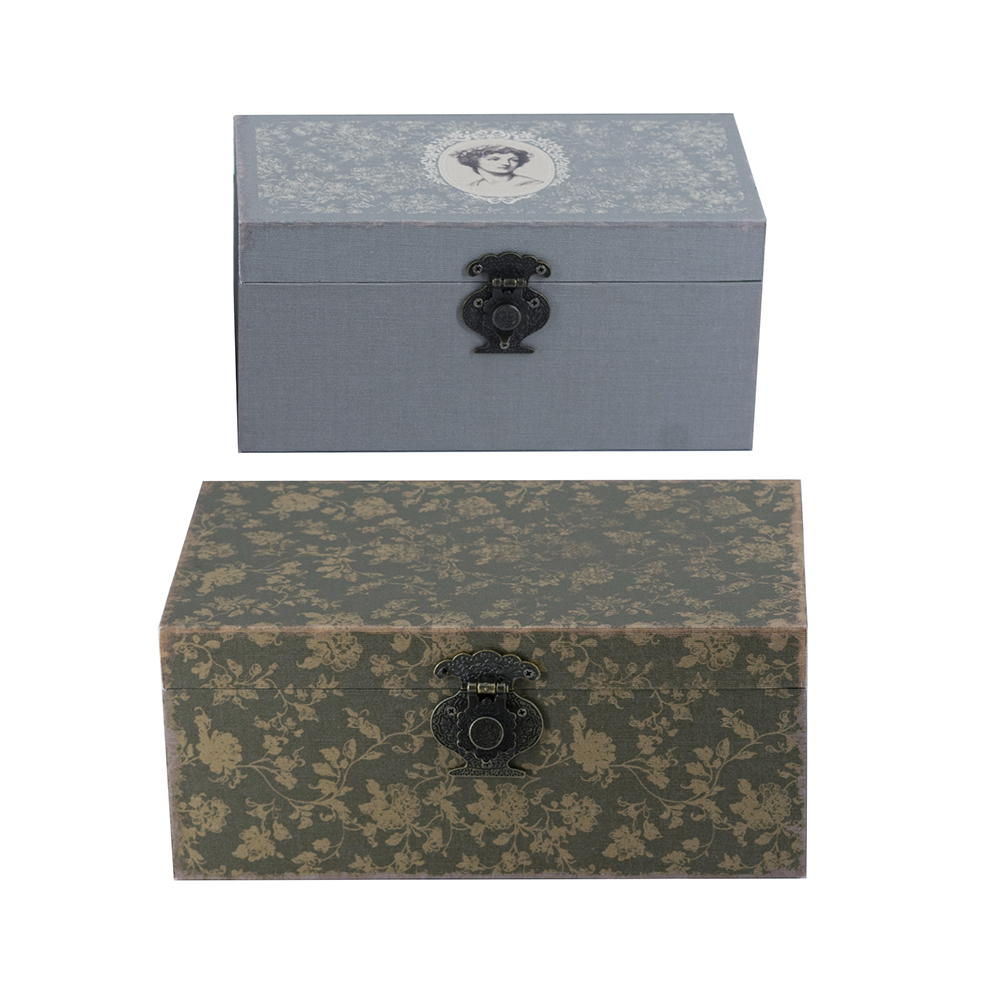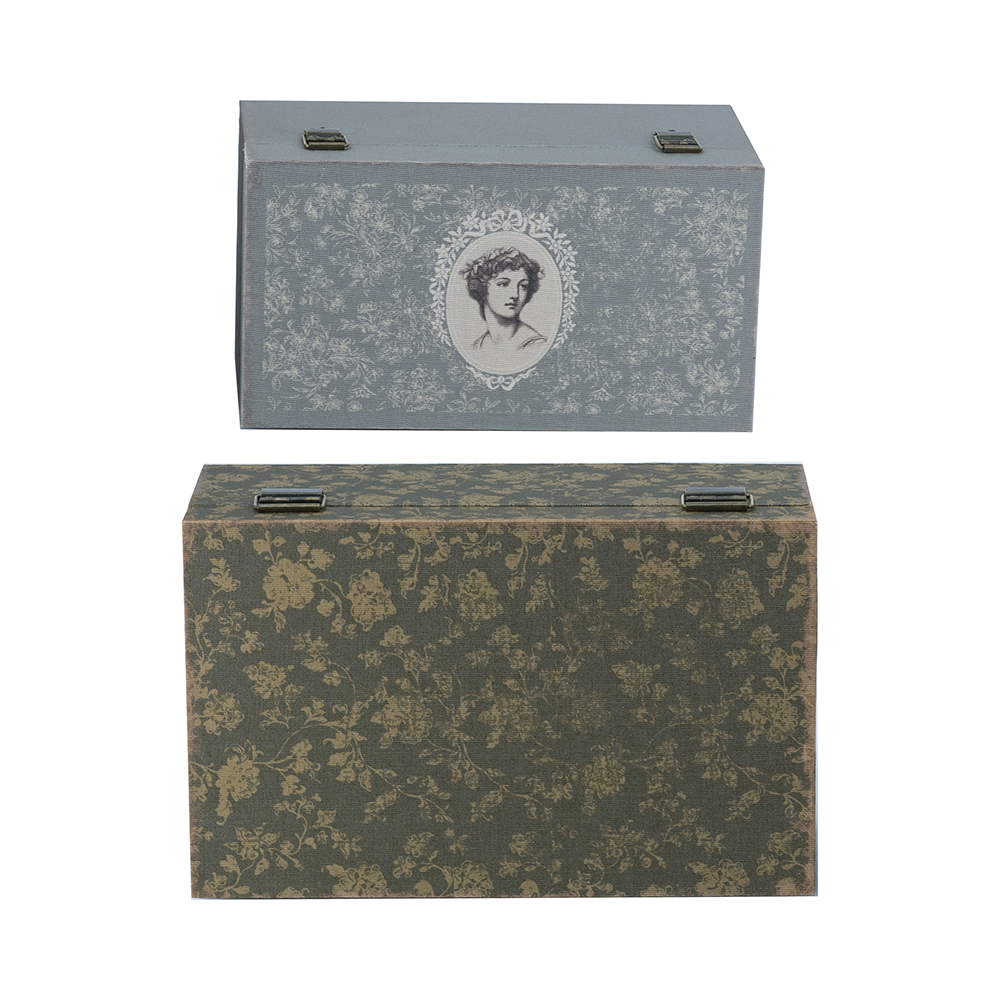 Add romantic elegance to your space, featuring a gray floral lady portrait on the small and olive floral pattern on the large, with antique brass latches for secure closure. Crafted from durable MDF and linen, they offer hidden storage for jewelry, trinkets, or mementos. Perfect for shelves or dressers, blending nostalgic design with practical organization for feminine, rustic charm.