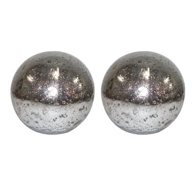 Inspired by the shimmering beauty of vintage mercury glassware, this set includes two decorative spheres, each featuring an aged silver finish and dynamic texture. Whether placed alone in a large container or paired with other orbs, this set brings a burst of timeless allure to any living room, bedroom, or entryway.