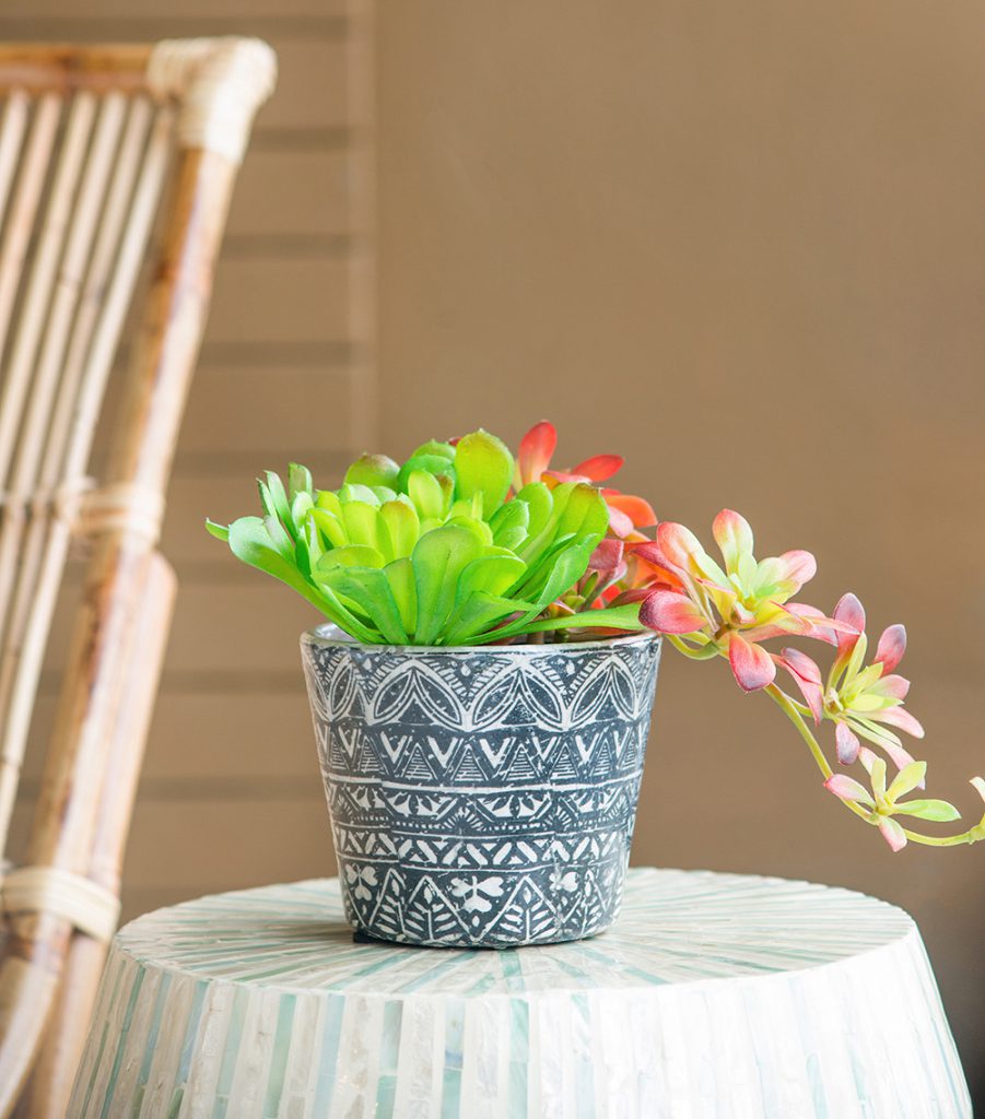 Give your green thumb a try with this stunning collection of planters featuring a crackled patina and distinctive, slightly exotic patterns. Perfect for herbs, succulents, or bright blooms, these planters look perfect on a spacious kitchen counter, lush patio, or beside a sunny living room window. The neutral colors complement any color scheme while the dynamic patterns add a bold, fresh look.