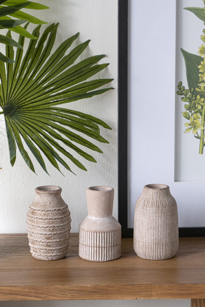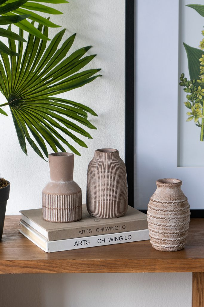 Breathing fresh, earthy life into the classic round vase, each piece features a distinct sculptural pattern and a natural brown finish. Whether clustered together or displayed separately, they will draw the eye on their own or when paired with vibrant greenery.