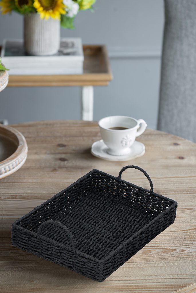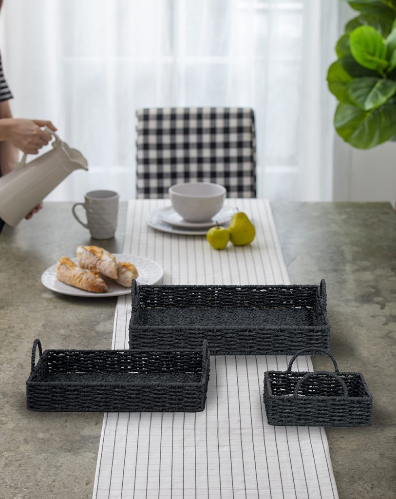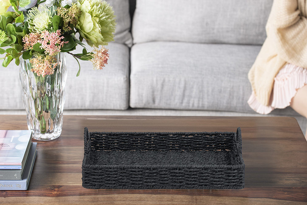 Reimagining the classic rectangular design as a versatile, eco-friendly trio, these trays are crafted from tightly woven paper fiber and finished with durable iron handles. Coated in a striking black hue, they will capture the eye whether styled on your coffee table, nightstand, kitchen island, or sideboard.
