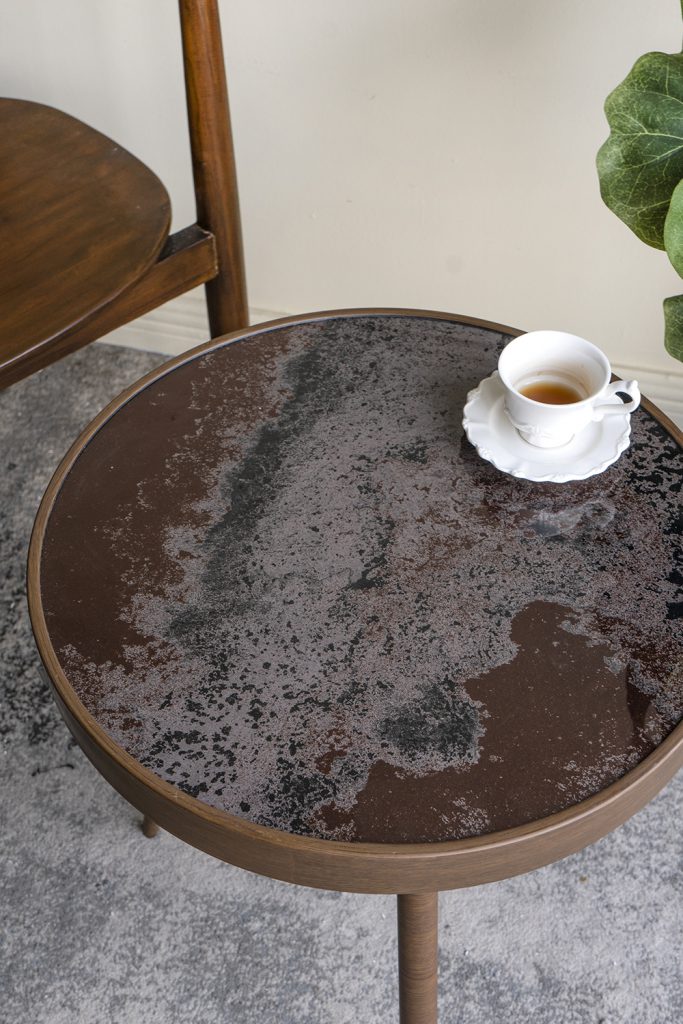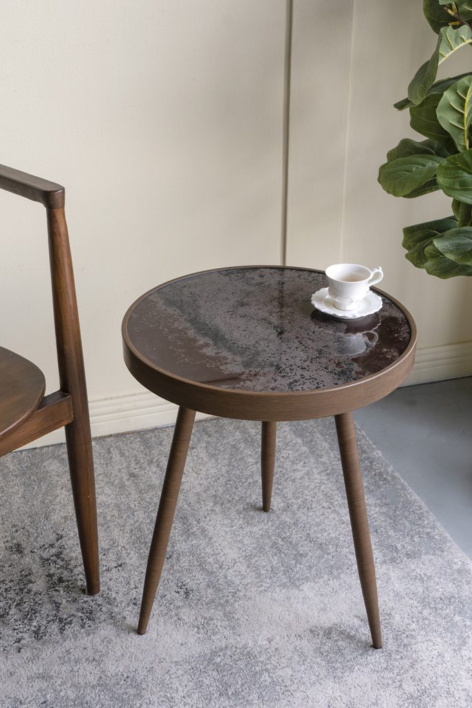 Reinventing the classic round silhouette, this accent table boasts a smooth glass top, an elegant faux marble motif, and three tapered metal legs finished in antique gold. Offering great versatility, it can serve as an end table, display pedestal, or plant stand, infusing any room in your home with a touch of organic charm.