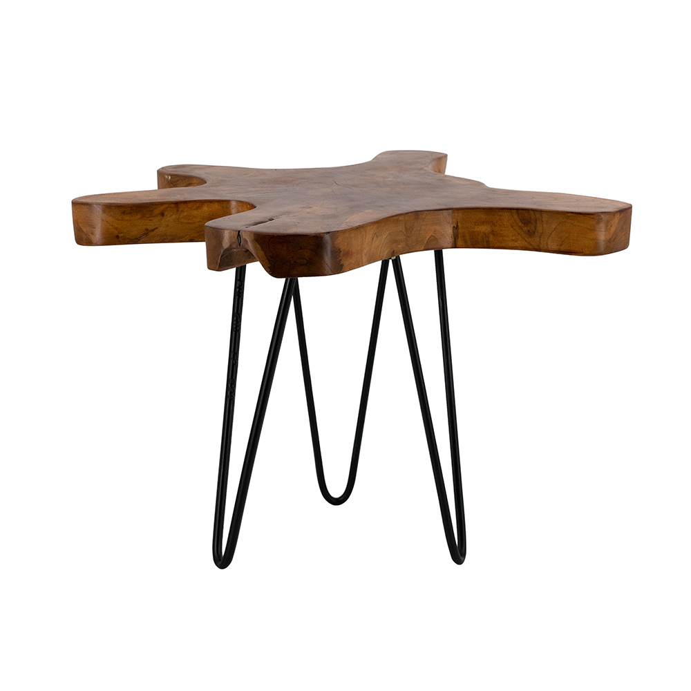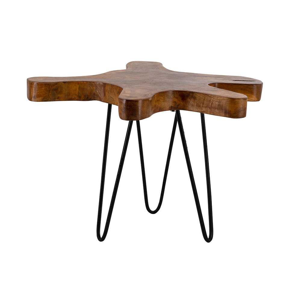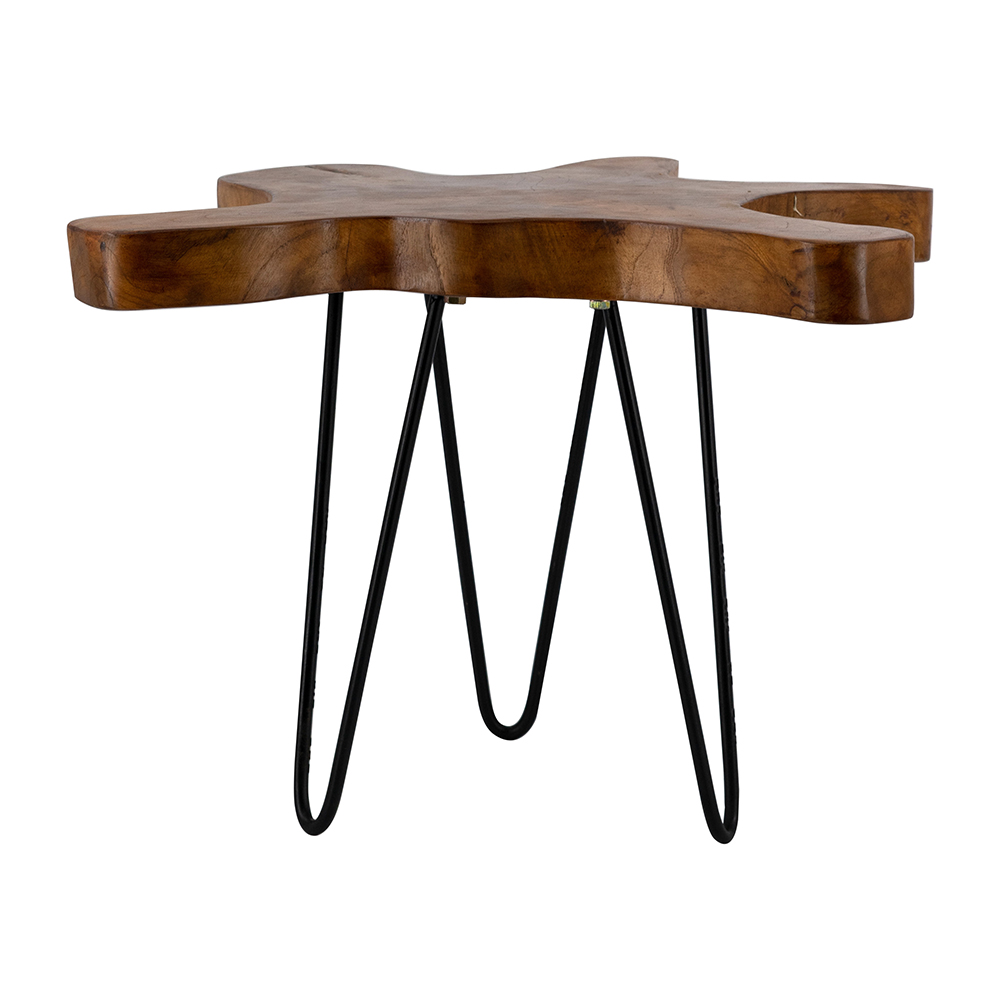 23.5x19.5x15.5" Brown Teak Wood Side Table with Live-Edge Design and Black Hairpin Legs 2EA/CTN