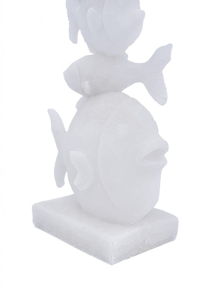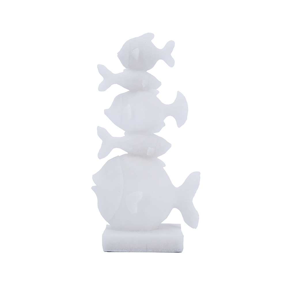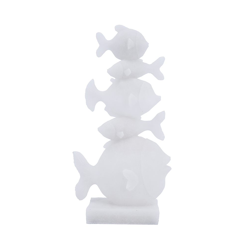 Bring whimsical ocean vibes to your space with this handcrafted sandstone and resin fish tower sculpture, featuring stacked abstract fish with textured bodies and fins in a pure white finish. It’s perfect for shelves, tables, or mantels, adding playful coastal charm to bathrooms or living rooms. Ideal as decor or gift for sea lovers, blending natural materials with modern whimsy.