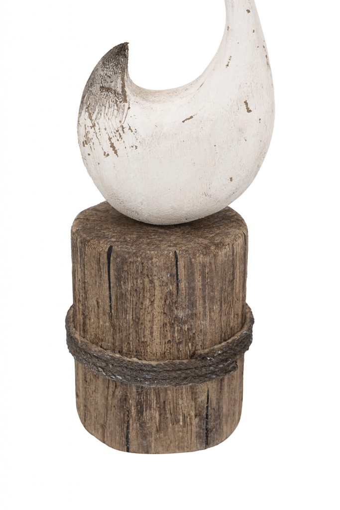 3x3x11" Paulownia Wood Swan Sculpture with Distressed White Finish and Rounded Brown Base 6EA/CTN