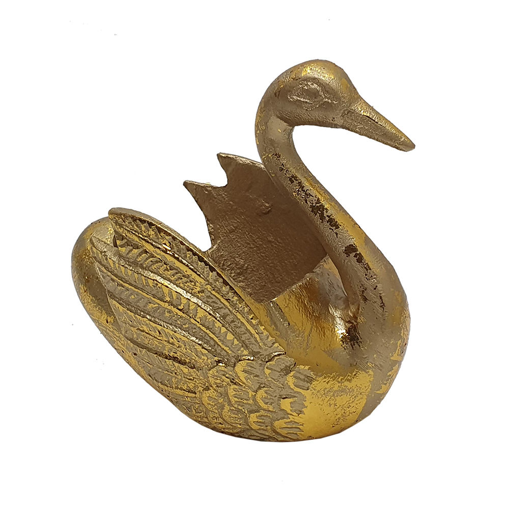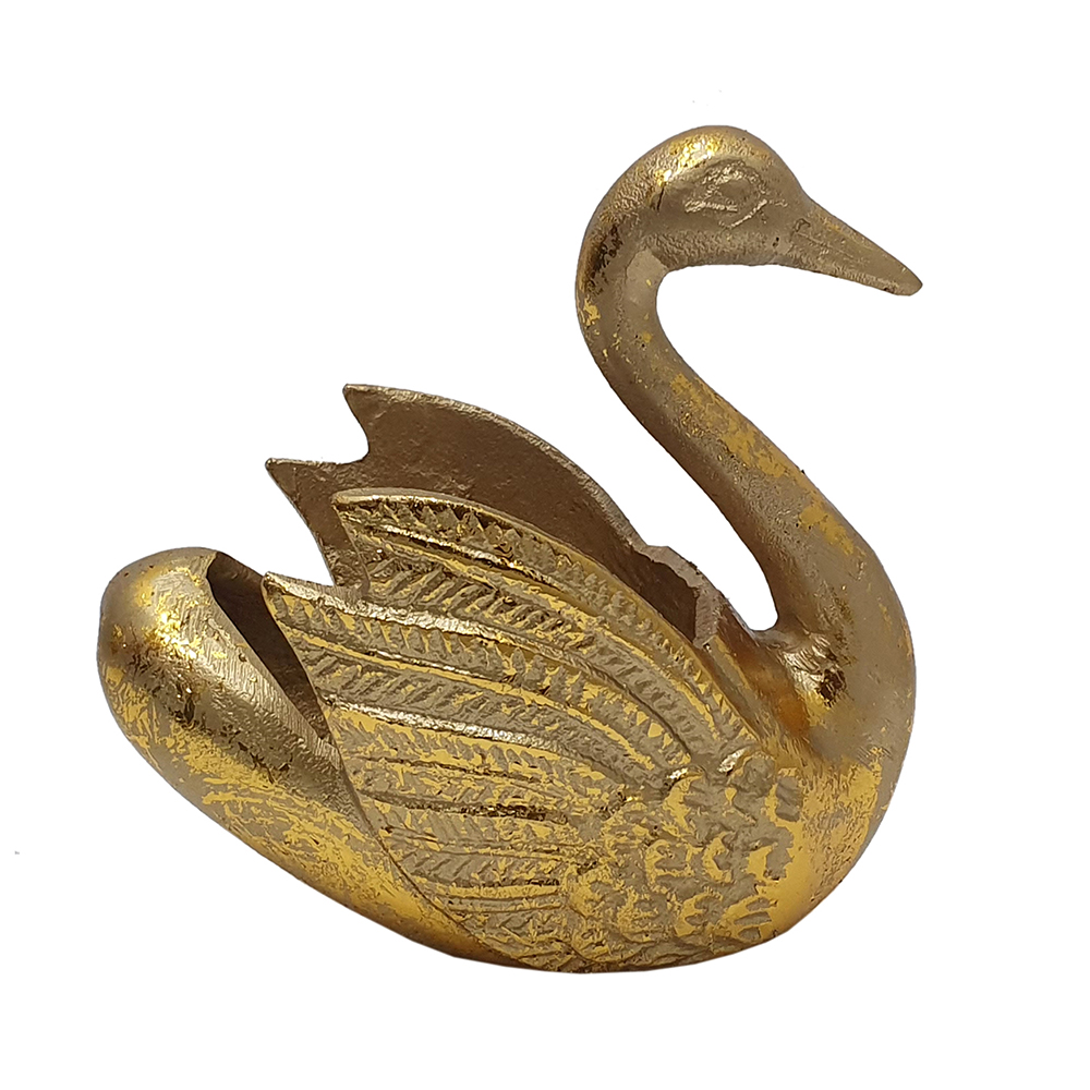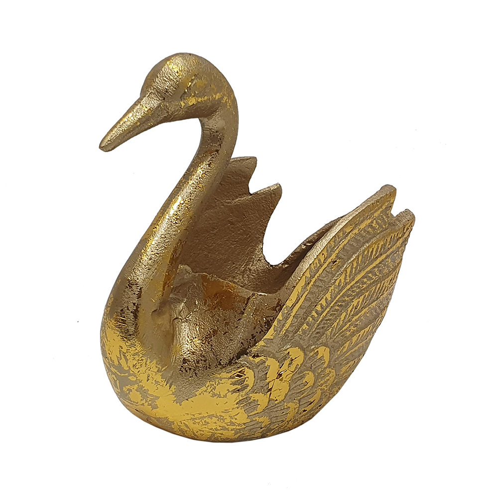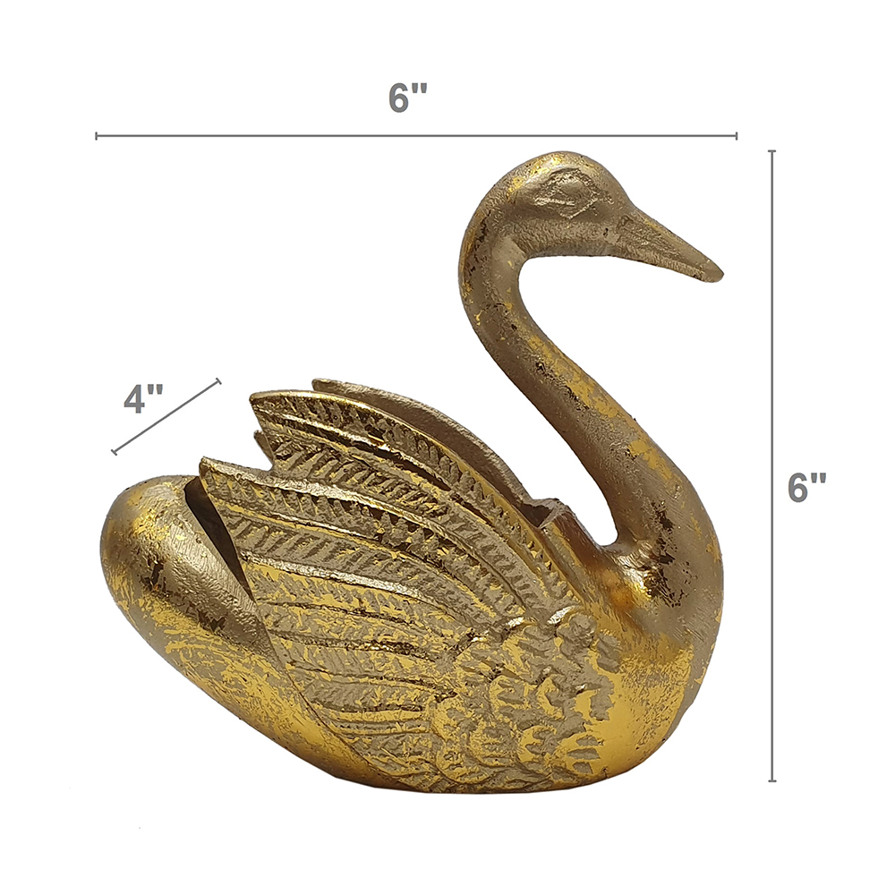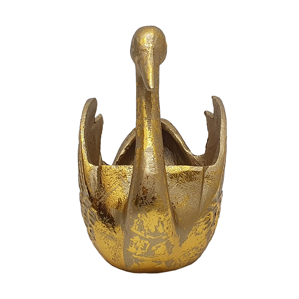 Add a touch of luxury to your space with this handcrafted aluminum swan planter, featuring a graceful S-shaped neck and textured feather details in a gleaming gold finish. Its hollow body is perfect for small plants, succulents, or trinkets. Ideal for shelves, desks, or entryways, this lightweight piece blends vintage charm with modern elegance, making it a stunning decor item or thoughtful gift.