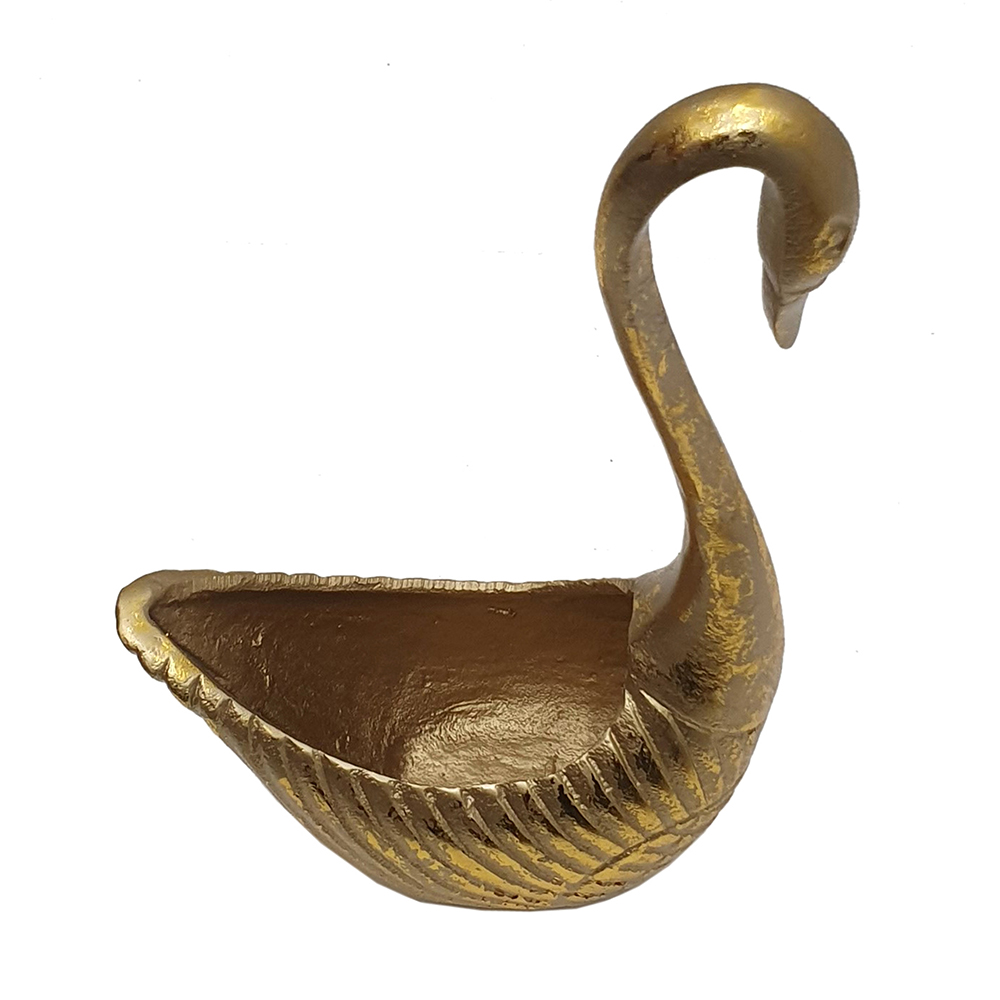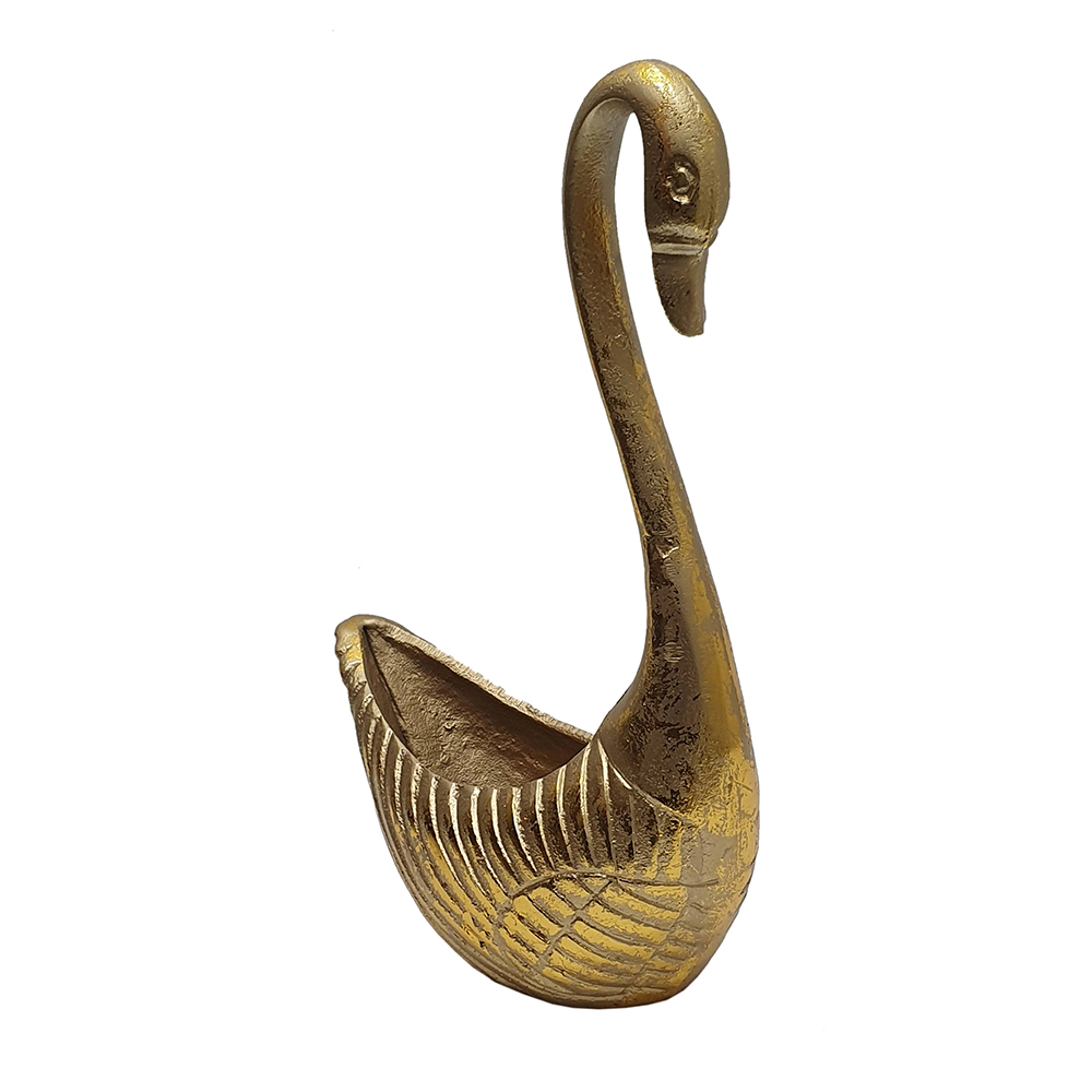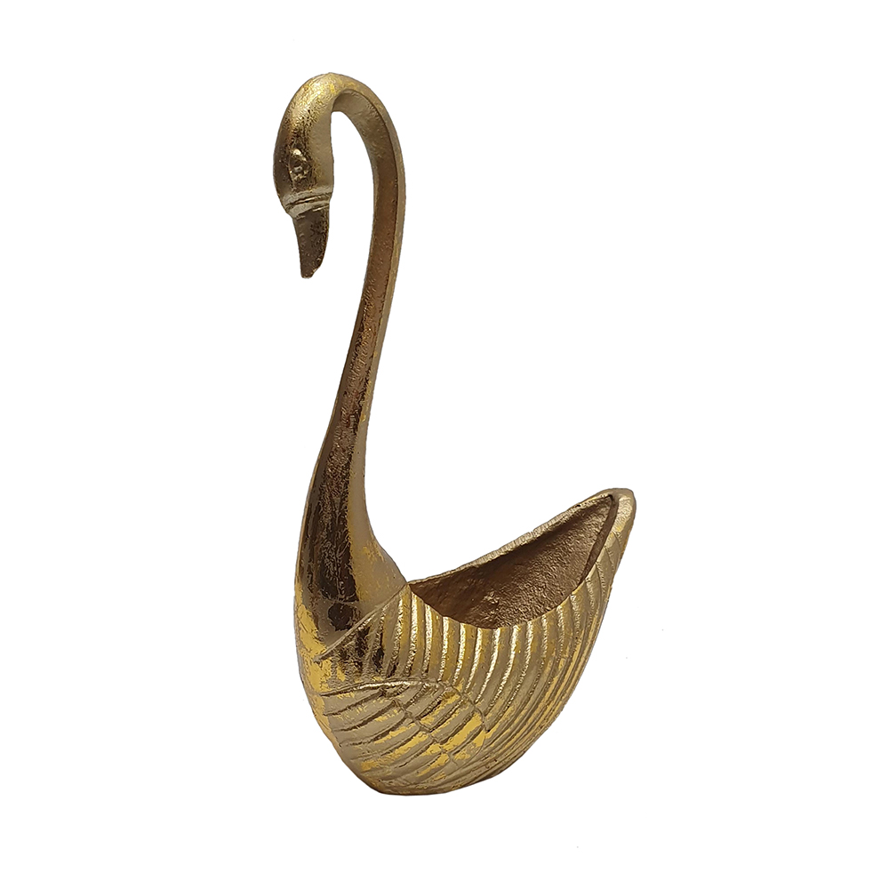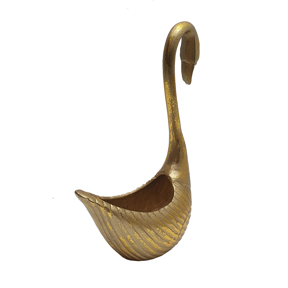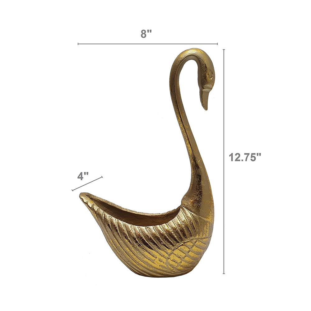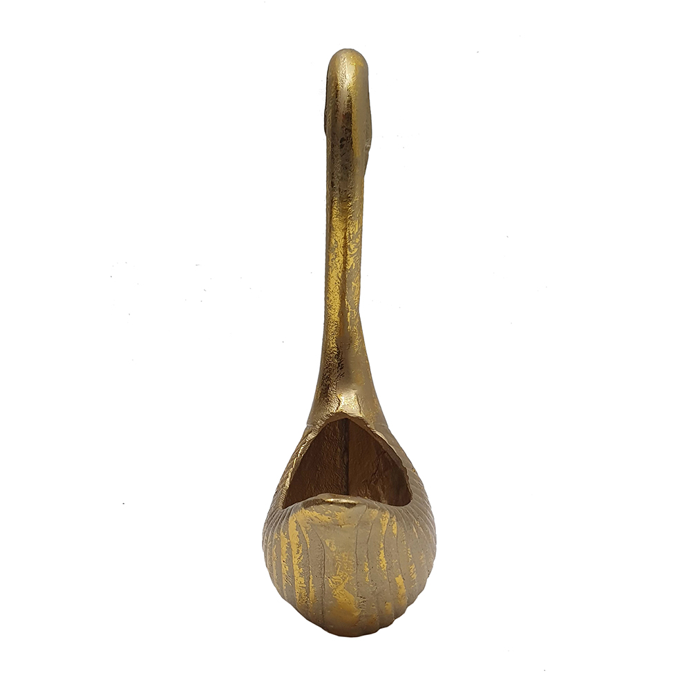 Add a touch of luxury to your space with this handcrafted aluminum swan planter, featuring a graceful S-shaped neck and textured feather details in a gleaming gold finish. Its hollow body is perfect for holding small plants, succulents, or trinkets. Ideal for shelves, desks, or entryways, this lightweight piece blends vintage charm with modern elegance, making it a stunning decor item or gift.