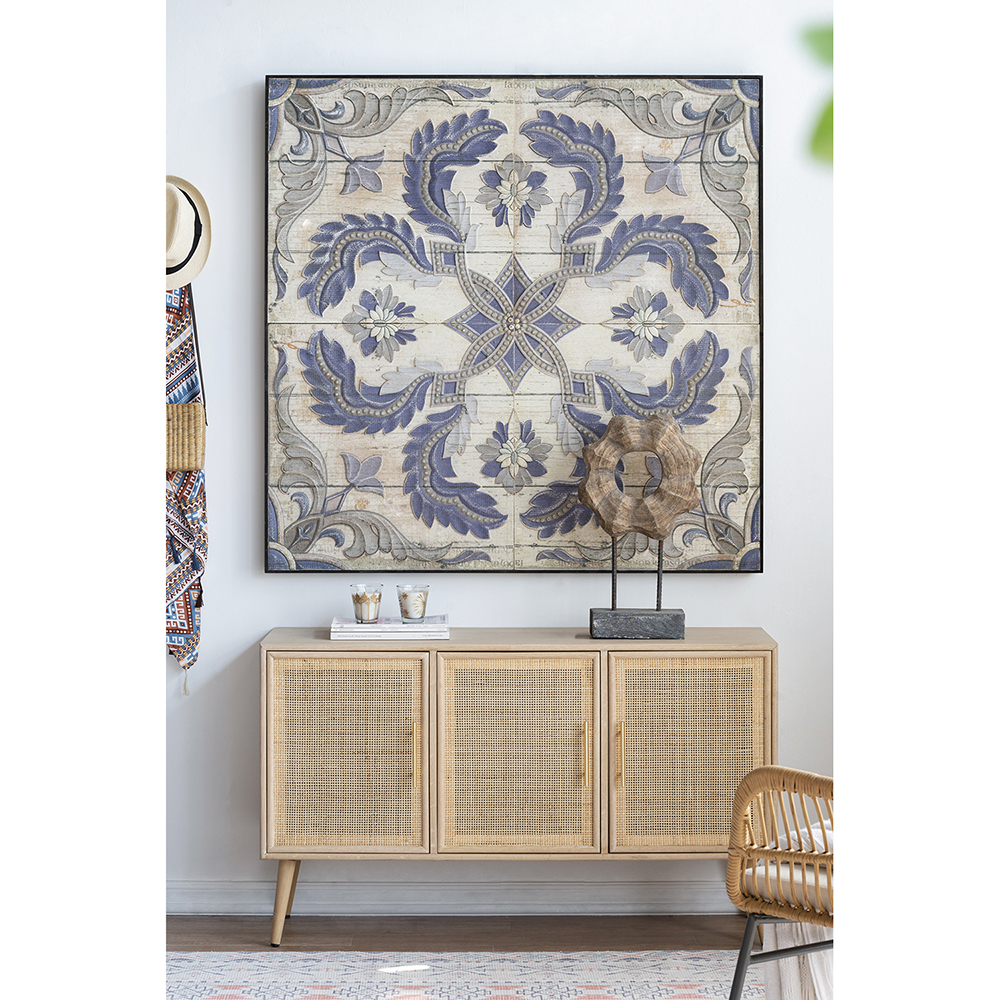 This sophisticated circle table accent is a unique medium-size abstract modern sculpture made from textured and distressed wood on a square base. Crafted with expert carving on its wood ring design, this piece is finished in a muted natural brown for an antique feel. Add this work of art to table tops throughout your home for an instant transitional touch.